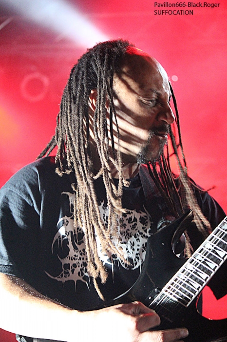 A 17heures25 sur la mainstage on débute avec CRUEL HUMANITY. Ce groupe Anglais formé en 1997 mélange allégrement dans ses compositions, black, death et doom, c’est assez inclassable et c’est bien ainsi. Le côté épique est apporté par une large utilisation de synthés. Ils ont joué notamment au festival de Bloodstock en 2013, et aujourd’hui donc c’est au tour du Metaldays de les accueillir. Beaucoup de monde au final pour ce groupe qui n’invente rien dans le style mais sait créer certaines atmosphères particulières bien appréciées semble-t-il avec un certain côté Rotting Christ et des envolées de metal grandiloquent, voire gothique, on les encourage donc. C’est SOEN qui prend la suite une heure après. Vous savez (ou pas) que cet ovni musical prog est composé notamment de Martin Lopez (Opeth) et de Steve Digorgio (Death, Testament), du beau monde donc qui sait jouer bien entendu. Mais inutile de se voiler la face, ni de se boucher les oreilles, c’est une copie conforme de TOOL qui nous parvient dans la tête avec des compositions faisant penser également à A PERFECT CIRCLE. C’est ce qui ressort à l’écoute de leur album de 2012 « Cognitive ». mais en live cela donne quoi ? Pas grand-chose de transcendant en fait et je n’ai pas supporté longtemps leur prestation et leur chanteur gothico/clean maniéré, sorry… Alors direction espace VIP pour me désaltérer tout simplement et me relaxer car SOEN m’a fatigué. Pour la suite, je ne vais pas être gâté non plus avec GHOST BRIGADE sur la grande scène également, groupe qui se présente à 19heures35. Les Finlandais pratiquent un doom/death assez fatiguant lui aussi (décidément, c’est la suite molle de Soen ou quoi !). Au menu, envois aériens, lumineux, poétiques, qui constituent la majorité de leur set-list. Quelques rebondissements plus brutaux viennent par moment nous sortir d’une certaine torpeur ambiante. Alors, comme vous l’aurez comprit, je n’ai pas beaucoup apprécié ce groupe qui pourtant est qualifié de génial bien souvent, est-ce grave docteur Métal ? Je m’en vais donc en « catimini » au bout d’un moment pour me diriger vers la seconde scène où doit se produire LENG TCHE à 20heures20. Souper pizza/frites obligatoire en attendant, juste en face de cette scène. Et puis voici LENG TCHE qui débarque après 15heures de route depuis son port d’attache la Belgique. Après avoir vu deux formations somnifères je vais me prendre une « kecla dans la chetron » comme dirait mon ami le keupon fou car les grindcoreux belges ont la frite (facile celle-là !). Le frontman Serge va passer presque la totalité du set à cheval sur les crash-barrières pour exciter et faire « growler » ceux des premiers rangs. Derrière sur scène, Jan, Nicolas et Olivier nous déchirent ce qu’il nous reste de neurones avec des riffs lame de rasoir et des rythmiques « blastées » à mort. Avec nos amis belges les montées d’adrénaline son courantes et c’est ça qui est bon, ce sont des pirates du grind sans foi ni loi, d’ailleurs le drapeau noir des « frères de la côte » flotte dans l’assistance, c’est un signe. Après plus de 10 ans d’existence, ceux de Gand ont encore de la ressource pour nous faire headbanger en améliorant d’album en album leur sauce piquante, bravo ! Après cette escapade brutalissime, me voici de retour à la mainstage vers 20heures55 pour les Britishes de MY DYING BRIDE. Je retrouve avec plaisir la bassiste Lena et le chanteur possédé Aaron. Les maitres du doom/death n’ont pas faiblit depuis plus de 20 ans de concerts et 11 albums remarqués et appréciés dans l’ensemble, avec ce style dont ils sont un peu les pionniers d’outre-manche. Au menu du « breakfast » Anglais, toujours cette mélancolie, ce romantisme noir exacerbé et épique. Le groupe après peut-être un certain passage moins inspiré revient depuis quelque temps en force à ses débuts magiques. Et en live cela se ressent forcément, leur dernier opus en date « A Map Of All Our Failures » nous ayant mis « la puce à l’oreille ». Dommage pour une fois qu’il ne pleuve pas pendant leur prestation, pour une ambiance plus sombre qui leur va si bien. Mais n’en demandons pas trop, ce soir Aaron et son groupe nous ont satisfait pleinement. Set-List : Like Gods Of The Sun, The Thrash Of Naked Limbs, From Darkest Skies, Catherine Blake, She is The Darkly, The Cry of Mankind, Turn Loose The Swans. Il ne faut pas manquer SUFFOCATION, alors à 21heures40 direction la seconde scène pour prendre une bonne dose de death-métal à la sauce new-yorkaise. SUFFOCATION créé en 1989 fait partie maintenant des incontournables vétérans de la scène death US, et c’est toujours un plaisir de les voir en live, alors ne boudons pas ce plaisir ce soir à Tolmin. Que de monde, Frank Mullen est ses sbires auraient pu passer sur la grande scène finalement, mais bon ! Suffocation laisse trainer toujours derrière lui des rumeurs de split, de « stand-by », alors les voir aujourd’hui avec sous leur bras leur dernier « méfait » en date « Pinacle Of Bedlam » cela ne se refuse pas. Une nouvelle violence et une nouvelle technicité se font jour, c’est la première remarque de ce concert. Frank nous gratifie toujours de ce chant caverneux mais aux dérapages « coreux », sa marque indélébile. Les guitares déchirent et le duo basse-batterie nous plombe la tête de façon magistrale, on ne risque pas de s’endormir. Le groupe commence avec des anciens titres, « Catatonia » et « Effigy Of The Forgotten » de 1991 mais n’oublie pas les petits nouveaux lourds et percutants que sont « Purgatorial Punishment » et « My Demise » par exemple. Mais ce soir tout est bon à prendre et participer à un set de Suffocation en pleine possession de ses moyens, c’est toujours un régal, ce qui est le cas ce soir devant un public déchaîné. Set-List : Catatonia, Effigy Of The F