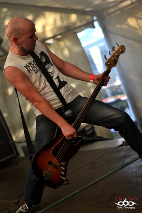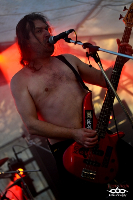 Et pour commencer, DISGRASEED sont déjà sur les planches depuis 5 bonnes minutes. Le quatuor déjà passé par Lille (ah bon?! M'en souviens plus...) et originaire des Ardennes plaît aux amateurs de Slamming Death metal. C'est bien orchestré, mais pas trop ma tranche. Par contre, le son est particulièrement jouissif surtout quand on se rend compte que l'on est dans une grande tonnelle (du genre des exposants dans les festoches), un peu moins d'une centaine de personnes déjà présentes mais qui n'évoluera pas beaucoup plus durant la journée et un cadre... pittoresque ! Le groupe est plutôt bien reçu, ne serait-ce que par les 4,5 loulous qui sont déjà bien en forme et qui n'arrêteront pas ou peu de faire des allers-retours en large de la scène pour se bousculer, si ce n'est pendant SETH, mais on y reviendra; et présentent à ceux qui ne connaissaient pas encore le groupe le premier album "Flesh Market", ainsi que quelques nouveautés... Je vais pas leur jeter la première pierre, mais ça sonne tout de même plus original qu'un Kraanium par exemple. Et de terminer par une dédicace à Total Boursoufle, ça n'a pas de prix ! (Ah bah oui maintenant je vous reconnais, on s'est rencontrés au Neurotic !!) Encore un groupe qui prouve qu'on a des musiciens inspirés dans notre beau pays !