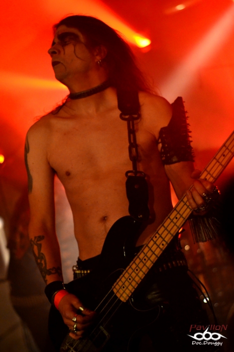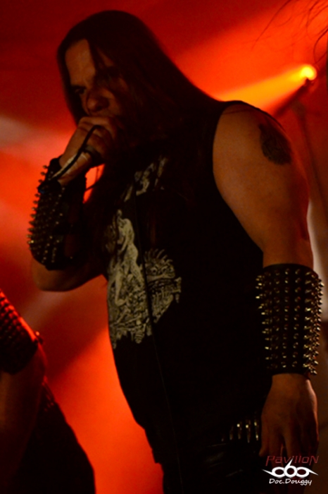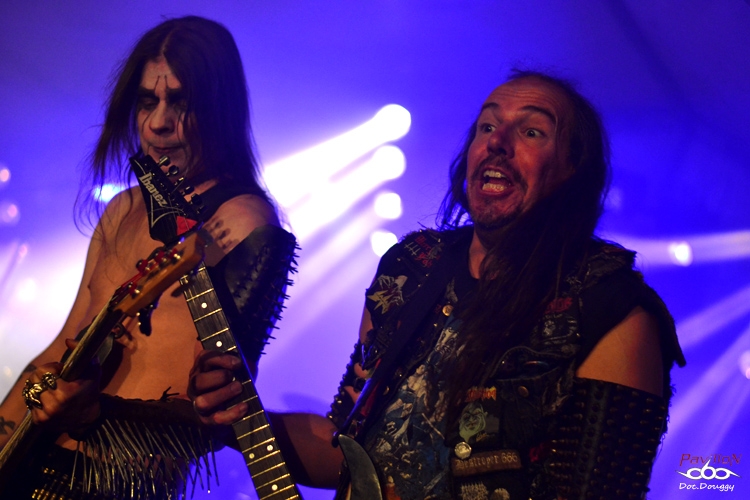 Résultat, il se fait déjà tard (ne serait-ce par l'état avancé de certains) et il ne reste plus qu'un groupe à l'appel : DESASTER. Inconnu au bataillon (tout du moins chez moi, pas chez le gars qui possède une veste à patchs presqu'entièrement à l'effigie de ce groupe) et pourtant arpentant la scène Outre-Rhin depuis le début des 90's, le combo originaire de Coblence (une ville non loin de Cologne) aux influences typiques de leur pays (cliché !) entre Thrash/Black old school et Speed Hard rock à la Mötörhead, je me retrouve à penser à des combos comme Nunslaughter ou Venom pour la simplicité et l'efficacité de leurs morceaux et surtout la thématique Enfer/Satan proche du 2nd degré.