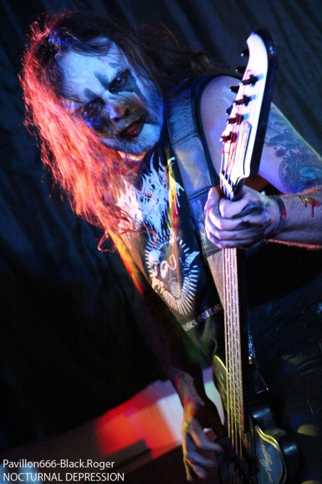 Sur scène trois formations qui ne sont pas nées de la dernière pluie, avec STORTREGN, NOCTURNAL DEPRESSION et CONJONCTIVE. Deux combos Suisses et une horde Grenobloise ont donc remplit leur mission ce soir avec du bon son bien métal, bien lourd avec des riffs tranchants et soli ciselés, comme on aime en fait ! Peut-être qu’un concert placé le vendredi soir attire un peu moins de monde chez les Savoyards plus enclins, vu la fraicheur de l’automne, à s’attabler devant des diots/polenta ou une bonne tartiflette, mais le public présent se révélera bien motivé pour installer une ambiance forte dans les lieux. Il est 20heures45 à l’horloge de Chez Drey, et ce sont nos amis Suisses de CONJONCTIVE qui lancent les débats avec non pas du black mais du deathcore bien démonstratif et bien remuant et les quelques « coreux » présents devant la scène vont « mouliner » d’entrée de jeu sans se faire prier. Il faut dire qu’il y a sur scène Sonia et Randy qui se renvoient leurs « growls » et autres « grunts » avec conviction, Randy qui fait partie aussi de VOICE OF RUIN vous m’aurez comprit ! Et derrière eux sur l’estrade ça « tabasse » sec avec Raph, Yannick et Clyves aux 7 cordes et 5 cordes de basse, sans oublier Manu aux fûts pour plomber le tout. Formé à Nyon en 2007 le groupe a déjà sorti un premier EP en 2009 et un « full-lenght » intitulé « Until The Whole Dies » en 2013 avec 9 titres brutaux, sombres (black ?) bien dans un registre death et saupoudré de « core » évidemment. Et ça Marche ce soir à Seynod, un set qui parait bien court car on aime évidemment leur route (666) ,traçée dans un métal moderne, « core » à souhait. Du deathcore fut-il « blackened » au black dépressif de NOCTURNAL DEPRESSION il n’y a qu’un pas à franchir dirons-nous, nous les black-métalleux invétérés. Mais ceux qui découvrent ce soir la horde grenobloise vont apprécier hautement aussi la prestation de L. Lokhraed et de ses sbires. En effet le quatuor en corpse-paints ne fait pas dans la dentelle même si ses compositions sont noires comme de l’encre, dépressives à en mourir et pesantes comme le doom. Il se dégage de leur prestation une ambiance glauque qui vous prend aux tripes, qui vous envahit progressivement la matière grise et qui vous plonge dans un certain néant nihiliste. Mais ces compositions sont bien vivantes dans cette odeur de mort latente qui plombe l’atmosphère avec des guitares lancinantes au soli maléfiques, aux riffs dissonants sur des tempos lourds, lourds, mais parfois plus rapide dans des envolées nauséabondes et vicieuses. Ce soir Nocturnal Depression semble avoir marqué les esprits et c’est amplement mérité de par leur travail acharné de composition et leurs interprétations live remarquables. Un groupe qui s’est fait une place enviée dans la scène black frenchie tout simplement, respect ! Nous retrouvons maintenant pour terminer la soirée encore un groupe Suisse, STORTREGN qui branche et joue sans délai. Et là, leur black mâtiné de death se veut rapide précis et surtout mélodique. Même si nous restons dans un métal extrême force est de constater que les guitaristes en perpétuel duo et duel ne lâchent rien et donnent cette touche mélodique bien technique. Mais en fermant les yeux devinez qui je vois ? Le regretté DISSECTION pardi, car SORTREGN joue dans la même cour que ce groupe devenu mythique de par ses mélodies glacées et par moment bien empoisonnés. Mais le quatuor Suisse de ce soir Joue et joue même très bien avec une présence scénique incroyablement prenante et agités. Deux albums au compteur pour ces musiciens Helvètes qui percent la toile de l’underground donc et qui pourrait bien un jour prochain se hisser parmi les grands du black/death mélodique, pourquoi pas ? En tous cas ce soir la démonstration de leur savoir faire aux couleurs Scandinaves est sans appel avec ces riffs changeants et parfois innatendus, cette basse démonstrative et ses vocaux arrachés et agressifs en diable. Du lourd donc, de l’incisif, de l’originalité parfois avec des compositions enlevées aux intros bien ficelées. Seule une batterie un peu plus présente serait la bienvenue pour soutenir l’édifice. Mais c’est un peu chipoter car Stortregn dans l’ensemble mérite une très bonne critique, et après un rappel réclamé à cor et à cris le groupe quitte la scène de chez Drey après nous avoir remplit la tête de sonorités hypnotiques à souhait, merci ! Retour à Lyon dans le brouillard de Novembre pour retrouver les brouillards du Rhône. Mais des bonnes images et du bon son restent ancrés dans notre esprit pour la route. Merci encore une fois à Transylvania Prod pour cette soirée métallique en diable dans la chaleur de Chez-Drey et à bientôt, nous l’espérons, pour de nouvelles soirées agitées. |