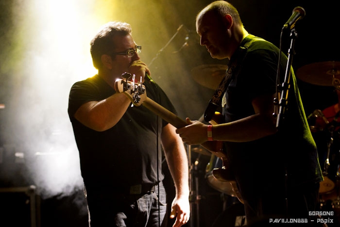 Voilà plus d’une 15aine d’années que l’association Extrem Duck Production s’investit dans la scène métal de la région de Sénart et du Val d’Yerres. Avec leur groupe XI-OX, les canards de l’extrême organisent des concerts réguliers avec le peu de moyens à leur disposition. Et à chaque occasion, ils ont invité des groupes différents pour partager la scène avec eux. La 6 eme édition du Scen’Art Metal Fest s’est tenue ce samedi 15 novembre dans la salle Gérard Philippe à Boussy Saint Antoine (91). Et cette année, la mairie a mis les petits plats dans les grands. Pour la première fois, les membres de l’association se sont vus attitrés deux techniciens son et lumières pour les seconder. Pour la première fois, les musiciens de XI-OX ont pu se concentrer uniquement sur leur prestation et non pas courir à droite et à gauche pour gérer les soucis techniques d’éclairages et de son. Les 4 groupes prévus au programme pour la soirée se sont même prêté au jeu et sont venu dès 10h le matin pour enregistrer les balances et optimiser ainsi le temps des entractes durant le spectacle. Cette organisation présentait tous les aspects d’un concert professionnel et a même permis de commencer à l’heure. Chose qui ne s’était pas vue depuis… Et ce que ca s’est déjà vu ? Ce sont les locaux de XI-OX qui ont démarré les festivités. Le lineup inchangé depuis 3 ans a encore gagné en efficacité. Vinz’ et Mad à la guitare se partagent les solos et les accompagnements. La section rythmique est assurée par Metlayer aux baguettes et Greuh à la 4 cordes. C’est Narogh qui, la crinière au vent, s’occupait de grogner dans le micro. Il a également troqué le micro contre une guitare laissant la partie vocale à Vincent le temps d’une chanson. Avec un métal thrash aux inspirations punk, XI-OX a su chauffer la salle pour cette première heure de concert. Malgré un démarrage gâché par le décibel mètre qui coupait la sono dès que son seuil de tolérance était atteint, les musiciens ne se sont pas laissé abattre. Une fois le câble de la sale bête arraché, le concert a pu se poursuivre sans accroc. Leur set comprenant d’anciens morceaux ainsi que de nouvelles compositions a été enrichi par la qualité du son et les effets de lumière utilisés au mieux. Tous les éléments ont été réunis pour permettre à XI-OX de faire une de leurs meilleures prestations à ce jour. C’était parti pour 15 minutes d’entracte. Et rien de mieux pour patienter jusqu’au groupe suivant que de se désaltérer avec une bière locale. Mais à peine mon verre terminé, j’ai dû revenir dans la salle pour voir GORGONE monter sur scène. L’ambiance a changé. Face à la scène, le public composé de vilains métaleux aux cheveux sales et virevoltants avaient été remplacés par de charmantes têtes blondes, d’un peu plus d’une dizaine d’années et même pas éméchés. Il y a décidément des traditions qui se perdent. Les parents non loin derrière, les surveillaient du coin de l’œil durant la prestation du groupe. Le quatuor nous a offert un break entre deux groupes bien bourrins en nous proposant un set beaucoup plus calme. La voix claire de Tof aidait énormément à cela. Comme il l’a dit lui-même en montant sur scène ’’ Salut, on est GORGONE. On est les gentils de ce festival ‘’. Les compositions plus rock que métal ont permis à tout le monde d’y trouver son compte. Rien de violent, tout était dans la finesse. Les riffs de guitare assurés par Steve étaient efficaces et ses camarades de la section rythmique, Nico à la batterie et Franck à la basse, l’ont accompagné avec brio. Le groupe a repris, pour le plaisir de tous, le morceau Toxicity de System of a Down en guise de clôture de leur prestation. Ce qui assurément les a fait finir sur une bonne note. Pendant que LURKING se mettait en place, j’ai eu le temps de savourer une mousse. Et j’en profite pour saluer la Brasserie Parisis et les remercier pour leur bonne bière. Elle a permis de rassasier de nombreux soiffards avec un produit de qualité. (Quoi ? De la pub? C’est ma chronique, je fais ce que je veux.) Et maintenant il est temps de vous parler de la prestation de LURKING. Le quintet était mené par Anthony à la basse et au chant ainsi que Delora, vocaliste principale du groupe. Cette dernière ne payait pas de mine à première vue, mais a littéralement scotché le public dès premier morceau avec un growl puissant et grave comme personne n’aurait pu s’y attendre. Et ses qualités de chanteuse ne s’arrêtent pas là car elle est également capable d’un chant plus clair et toujours juste. Elle parvenait même à alternait les deux styles brillamment au sein d’un même titre, ce qui conférait un contraste saisissant à son interprétation. Mais cette ambivalence ne se retrouve pas seulement dans le chant. Les compositions elles aussi puisent leur inspiration dans des styles très variés. On y reconnaît des riffs de guitare tantôt thrash, tantôt heavy, teinté de death et parfois même de doom pour l’ambiance des titres un peu plus calmes. Le bassiste faisait aussi un très bon travail en jouant des lignes au groove agréable. Le tout était bien entendu servit par une batterie très nerveuse. L’ambiance était au rendez-vous et les pogos aussi. Un groupe bien plaisant que j’espère recroiser un jour. Mais voilà déjà l’entracte qui pointe le bout de sa bière. En parlant de ça, j’en profite pour faire un coup de gueule à propos de l’organisation. Les entractes sont trop courts. On avait le temps de boire qu’une seule bière entre deux groupes, c’est extrêmement fâcheux. Je me demandais même si les canards de l’extrême n’ont pas fait ça exprès pour se garder la fin des fûts rien que pour eux. Mais ma réflexion fut vite stoppée par les premières notes de DATURHA. Leur set à peine commencé, le cha