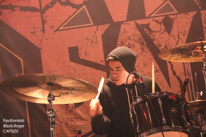 Il n’est même pas 18heures lorsque CAPSIZE investit la scène, avec déjà beaucoup de monde arrivé dans la salle pour apprécier ce premier combo venu de San-Diego, Californie Avec sous leurs bras un premier album intitulé « The Angst In My Veins » ils débarquent sur les planches avec une énergie folle. Guitariste et bassiste s’envoient en l’air avec « jumps » sans répit, le frontman est intenable aussi. Belle chorégraphie hardcore me direz-vous, mais musicalement parlant ça vaut quoi ? Cela vaut le détour tout simplement entre mélodie et agressivité ils semblent avoir trouvé un certain équilibre et la petite demi-heure qui leur est allouée va mettre tout le monde d’accord en ouverture de cet Impericon Never say Die Tour 2014 tout simplement. J’ai bien aimé et les jeunes « coreux » dans la salle aussi je crois.