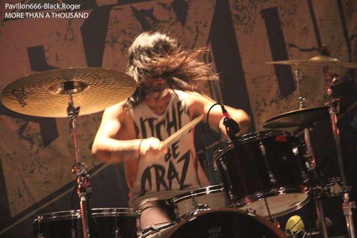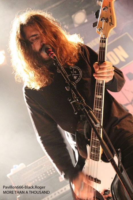 Cette suite plus musclée sera introduite par les Portuguais de MORE THAN A THOUSAND qui se présentent à nous, avec non pas un look de « coreux », mais plutôt un look de heavy-métalleux cheveux au vent. Mais comme dirait mon ami le métalleux fou, il ne faut pas se fier aux apparences Et cela se vérifie dès le premier titre avec une recette métal alliée au hardcore qui fait mouche et réveille tout le monde dans la fosse.