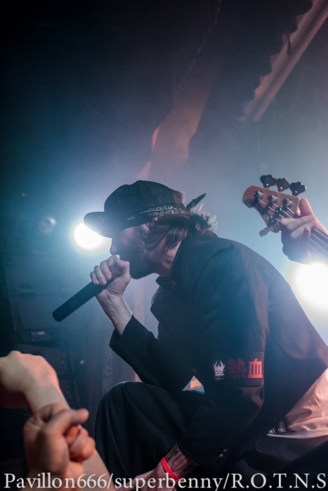 Pour faire monter la pression, 2 groupes étaient prévus en 1er partie: Inner Reflection et The Great Divide. Mais ce dernier a dû renoncer pour “cause de blessure sérieuse” (source:Facebook de ROTNS). C’est donc Hightower qui les remplacera au dernier moment. A signaler que la réputation de R.O.T.N.S n’est plus à faire sur le sol parisien:Le concert affiche complet! On commence donc les hostilités avec Inner Reflection qui chauffe la salle avec un metalcore bien carré et surprenant.J’avais quand même écouté quelques morceaux pour savoir à quoi m’attendre et malgré la qualité des musiciens je n’avais pas accroché à ce genre pour lequel j’ai de plus en plus de mal. Mais leur prestation live m’a vraiment bluffé, le chanteur attaque fort direct, le son est bien lourd, pas de répit. C’est nettement plus agressif que ce que j’ai pu entendre sur la toile, j’ai même du mal a reconnaitre leur morceau phare “Will You” qu’ils jouent dès le début. Il y aura bien quelques passages plus atmosphériques, proche du metalcore classique mais cela ne dérange personne. D’ailleurs, très rapidement, les fans lâchent leur énergie en moshant, autant les femmes que les hommes. Le frontman chauffe bien la salle mais pas suffisamment à son gôut. Pourtant la soirée part bien, il me semble, ça risque d’être bien chaud pour R.O.T.N.S. Après ce set de bonne facture, l’audience doit accueillir Hightower, jeune groupe parisien. Setlist Inner Reflections: -Intro -Will You -Overreaction -SDDS -Growing Fear -Sworn Enemy -Confrontation Hightower fait du hardcore/punk mélodique.N’étant pas fan de ce style, il est difficile de faire un report mais on peut quand même dire qu’ils se sont bien dépensés, notamment le chanteur qui partageait bien avec le public. Certes, ce même public regardait plus calmement que le groupe précédent, mais appréciait quand même. La salle s’est nettement remplie, et cela encourageât nos parisiens à continuer le set proprement.Le batteur a un charisme certain, même caché derrière ses fûts…suis-je suffisamment objectif ou est-ce dû à son t-shirt du groupe hxc Arkangel que j’affectionne tout particulièrement? Sur la fin du set, les vrais fans se lâchent en reprenant en coeur les refrains. Bonne ambiance et bravo à Hightower d’avoir su répondre présent à la dernière minute face à une audience qui a su calmement apprécier. Enfin, la salle est bien pleine, le balcon bien garni pour accueillir Rise Of The Northstar, composé de Vithia au chant, Eva-B et Air One aux guitares, Fabulous Fab à la basse et Hokuto No Kev à la batterie. Ce groupe français envoie un hardcore métal bien agressif mais le gros plus, leur marque de fabrique c’est le Japon. En effet, la culture japonaise, tout particulièrement celle des mangas est omniprésente sur leur tout nouvel opus:“Welcame”. Il n’y a qu’à regarder la pochette de celui-ci pour comprendre, alors que sur la scène, des drapeaux avec inscription en japonais sont installés.La salle est impatiente, et R.O.T.N.S commencera même son set un peu plus tôt que prévu. Après une rapide intro, débarquent nos musicos, prêts à frapper un grand coup! D’entrée les riffs sont lourds mais lorsque Vithia, le frontman, arrive la salle ne se contient plus, ça part direct en pogo.Etant tout prêt de la scène, il m’est difficile de reconaitre les 1er morceaux qui sont pourtant les 1er de l’album:”What the Fuck” et “Welcame”. En me déplaçant (difficilement) l’acoustique est meilleure et je peux profiter pleinement du show. Nos 5 lascars sont à la fois stéréotypés hardcore oldschool dans l’attitude mais, leur fameuse touche japonaise, présente jusque dans leur petit veston, permet d’en faire une groupe unique. Musicalement?…ça tabasse, les riffs saccadés s’enchaînent aux riffs plus lourds genre beatdown comme dans “Tyson”, Fabulous Fab et Air One assure les choeurs sur “The New Path” ou encore “Bosozoku” tandis que sur ce même morceau, Eva-B nous montre sa dextérité en solo.Car oui R.O.T.N.S c’est aussi des soli, certes pas à tous les morceaux, mais quand on fait du hardcore c’est rare. Eva-B, avec son masque de chirurgien si populaire en Asie, a un talent incroyable à la guitare. Ses soli sont mélodiques et puissant en plus d’être techniques (en tapping notamment). La puissance de leur son ainsi que les soli me font penser à du Machine Head époque “Burn my eyes”, bien que là on parle de hardcore métal. Par contre, nos 5 samuraïs ne changent pas souvent de place, mais il est vrai que la scène est exigüe. Eva-B est trop souvent en retrait malgré ses soli. Heureusement, il saura porter toute l’attention sur lui lorsqu’il se retrouvera seul, assis sur un tabouret pour jouer le solo d’intro de l’album. Vithia lui, joue avec le public, avec sa voix metal mélangée d’un flow hip-hop (écoutez la reprise de Pharoahe Monch “Simon Says”), pour faire hurler à tour de rôle le pit et le balcon du divan, il proposera un wall of death et de nombreux circle pit fracassant se formeront. Le meilleur moment sera quand même sa déclaration d'amour pour le Japon avec cette phrase: "Entre être le numéro 1 à paris ou le numéro 2 à New York, je préfère être le numéro 10 à Tokyoooo!!!" représentative à elle seule du véritable esprit hardcore. On n’est pas là pour la gloire. Le morceau final “(SaSaSaSaSa)-Samourai Spirit” repris par la plupart des fans mettra un terme au concert, l’album “Welcame” aura été joué dans son intégralité ainsi que “Protect your Chest”, "Bejita" et "Sound of Wolves". Vous l’aurez compris, ce concert fût une véritable tuerie car R.O.T.N.S a su s’approprier ce style souvent répétitif qu’est le hardcore, en créant une atmosphère japonnaise autour, en jouant des soli sans en abuser et surtout en sachant aller chercher ses fans t