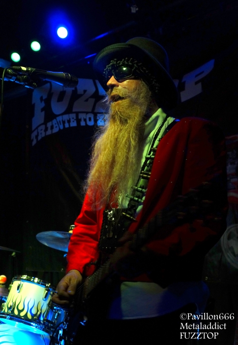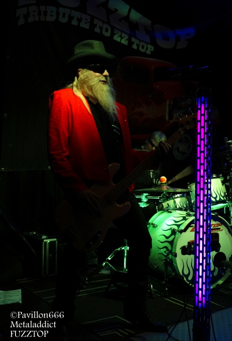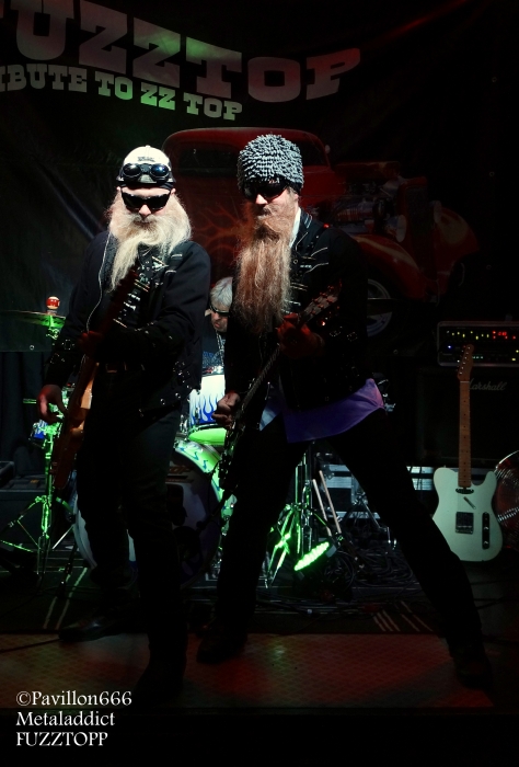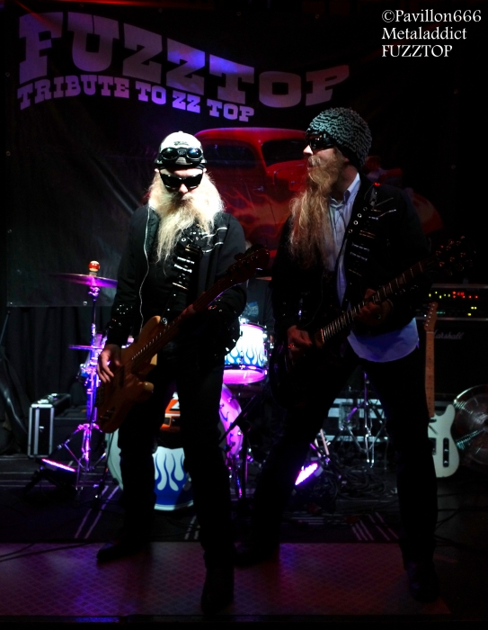 Ils ont une grande expérience en groupe, chacun dans différents styles comme : la Country, le Pub Rock, le Southern Rock, le Blues ou encore le Rock' n' Roll. Ils ont en eux la flamme qui vous fera retrouver, découvrir ou apprécier leurs Maîtres que sont ZZTOP ! FUZZTOP nous ont donc fait le grand plaisir de leur présence pour un Tribute to ZZTOP au Caravan Sérail de Saint Alban (pré de Toulouse), le 10 Avril 2015. Le public présent pour ce concert voit vers 21h30 le trio de FUZZTOP investir la scène et dès les premières mesures, l'impression de voir et d'entendre le trio original est parfaite. Gestuelle, décor et son nous ramènent directement aux succès du groupe Texan. Pour en citer quelques un, nous avons eu le droit ce soir là d'entendre les titres : Gimme all your Lovin', Rough boy, Blue Jean Blues, Got Me Under Pressure, Sharp Dressed Man, Tush, Tube Snake Boogie, Viva Las Vegas, Legs...etc . Du ZZTOP quoi et on ne s'en lasse pas. Hormis son talent de musicien, FUZZTOP manie aussi bien l'humour et le public d'abord timide, se met a danser, et applaudir de plus belle. La soirée se divise en trois parties, pendant lesquelles toutes les époques de ZZTOP sont visités, le look est différent lors des 3 Sets, mais l'énergie reste intacte et communicative. Et le morceau alors ? Ils l'ont joué ? Mais bien sur, c'est dans la 3ème partie que FUZZTOP interprète ZE tube : La Grange, dans la liesse générale ! Pour clore la soirée après plusieurs rappels, FUZZTOP interprète une seconde fois le titre Gimme all your lovin'. Avant de se prêter volontiers à des dédicaces et a poser pour des photos avec ceux et celles qui le souhaitent. Prenant même tout son temps pour bavarder, échanger et prendre un verre. En fait donc ces gars sont pétris de talents, mais sont aussi très abordables, et réussiront a vous transmettre leur passion pour la musique et ZZTOP. Alors dés que vous entendrez parler d'eux prés de chez vous, n'hésitez pas à aller les voir et les applaudir, vous n'aurez aucun regrets ! |