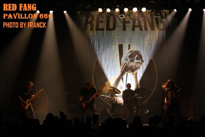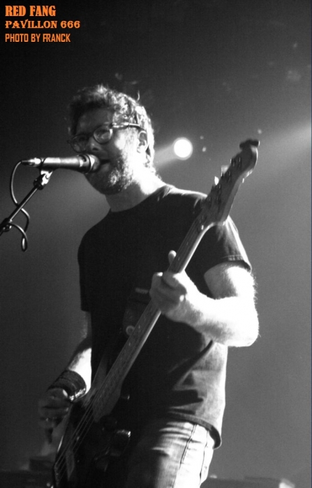 Par conséquent, Pavillon 666 ne pouvait pas louper un événement pareil, alors c’est un réel plaisir de se retrouver dans cette salle absolument magnifique que j’affectionne particulièrement, surtout quand il y a un menu comme celui de ce soir. L’honneur revient aux Savoyards de Space Fisters d’ouvrir le feu pour cette soirée placée sous le signe du Metal hyper solide et rugueux, dur et résistant comme de l’iridium. Le set démarre tout en fuzz écrasante et compressée, torturée entre la guitare de Robin et la basse de Clément qui est également au chant. Le son est puissant et franchement ils envoient du lourd. La voix de Clément va se percher dans les médiums avec une clarté intense, ce qui fait que le chant de Space Fisters est agréable à écouter et se place largement au-dessus des instruments donc on l’entend parfaitement. Mo à la batterie est résolument un sacré cogneur, mais il sait redescendre avec talent la rudesse de son jeu lorsque l’énergie retombe et qu’un rock progressif pointe le bout de son nez dans des breaks assez longs aux phrasés mélodiques. C’est à ce moment là qu’intervient toute la finesse du jeu de Robin à la guitare, un jeu technique sculpté aux effets de modulation, ce qui tranche carrément avec le gros son fuzz qui tapisse le fond sonore de la rythmique. Ceci est aussi valable pour Clément qui dans ces moments, allège aussi son jeu de basse pour laisser de l’espace à des lignes planantes et mélodiques. Toutefois, la partition reste très riche avec un gros Stoner Rock aux forts accents psychédéliques. Durant le set, on a parfois l’impression de revisiter les années 70 avec gros accent Hendrixien et le tout avec un son énorme. C’était une excellente première partie et je vous invite à visiter l’univers de Space Fisters en suivant le lien de leur page facebook : https://www.facebook.com/SpaceFisters?fref=ts Si la devise de l’Oregon est « Alis volat propriis », à savoir : Elle vole de ses propres ailes, je crois que c’est effectivement le cas en ce qui concerne la musique de Red Fang. Une musique puissante, mélodique et carrée qui possède un véritable caractère, une marque de fabrique. Direct comme une grosse gifle les quatre gars de Red Fang prennent d’assaut la scène de L’Epicerie Moderne et ça part pied au plancher. Oups !! Faux départ, dès les premières mesures, John Sherman le batteur, explose sa pédale grosse caisse. Bon ben du coup il faut patienter un peu le temps que ça se répare et visiblement, ça ne se passe pas tout seul. Bon, ça y est, la batterie est de nouveau d’attaque et les quatre compères refont leur petit rituel sympathique de serrage de louches entre eux avant de commencer le concert. Allez hop c’est reparti et cette fois pour de bon. Le matos tiendra le coup jusqu’à la fin du set… Ca attaque à la dure et les anciens ne font pas semblant. Red Fang envoie du lourd dès les premiers titres avec des morceaux de l’album « Whales and Leeches » puisque c’est le plus récent. D’ailleurs Red Fang va rapidement balancer un petit « Blood Like Cream » qui va déchaîner le pit qui va remuer durant tout le set. Ce groupe a vraiment un don pour faire bouger le public. Ils ne se contentent pas seulement de sonner Stoner, ils possèdent un véritable groove qui entraine les spectateurs dans la spirale infernale du mouvement et croyez moi, ça bouge !! David Sullivan et Bryan Giles aux guitares assurent comme des bêtes et se renvoient riffs et solos d’un bout à l’autre de la scène tout en ne lésinant pas sur le gros son. Bryan Giles qui partage le chant avec Aaron Beam à la basse balance toujours cette voix claire et mélodique que j’aime tant et qui donne à ces mecs du nord des States des intonations sudistes qui ont fait toute la légende du rock. Aaron Beam est toujours égal à lui-même. En véritable frontman de Red Fang, sa place est éternellement en bord de scène où il envoie un maximum, que ce soit au chant ou à la basse. A l’Epicerie Moderne, le son est excellent et sa voix passe largement par-dessus les autres instruments, ce qui fait que ce set est un véritable régal où l’on revisite les trois albums du combo de Portland, même si pour ma part je pense que leur troisième album « Whales & Leeches » est résolument plusieurs crans au dessus des deux autres. C’est après un set totalement énergique et euphorisant que Red Fang quitte la scène. Ils reviendront pour un rappel de plusieurs titres toujours pied au plancher avec un public totalement déchaîné qui en redemandera encore et encore … Un grand merci aux Red Fang pour cette magnifique soirée placée sous le signe du rock velu et costaud. Ils nous prouvent une fois de plus qu’ils ne sont pas des petits joueurs et que l’on peut largement les classer dans le top de ce qui se fait de mieux. Merci également aux hypnotiques Space Fisters qui nous ont livré une première partie totalement hors norme. Et un énorme merci à l’Epicerie Moderne et toute son équipe pour son accueil chaleureux et professionnel dans leur magnifique salle à Feyzin où Pavillon 666 espère revenir bientôt. |