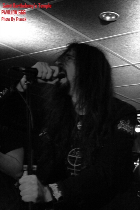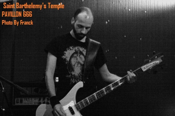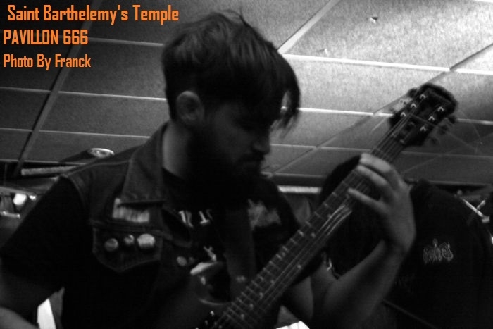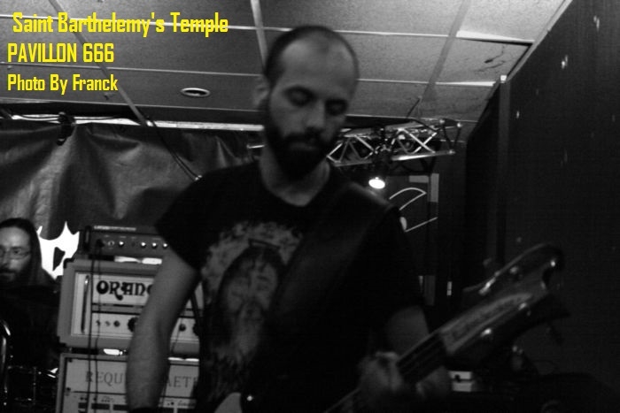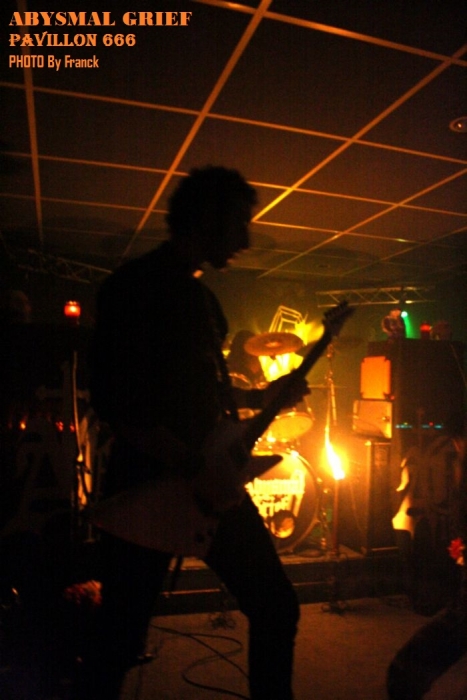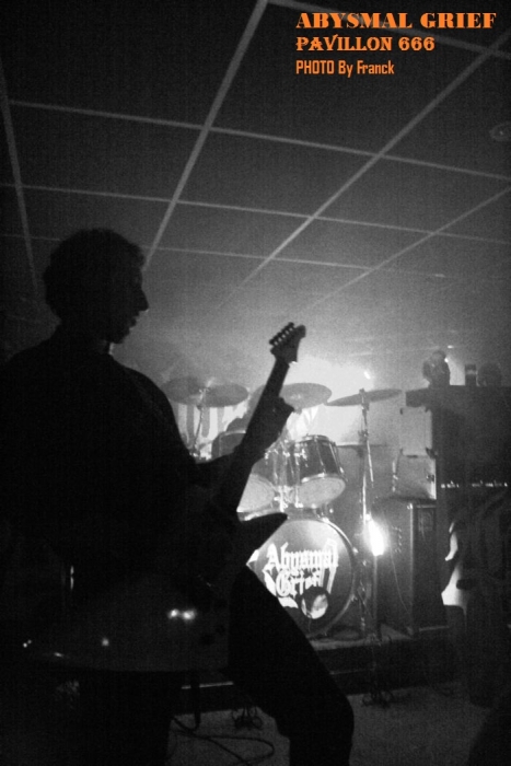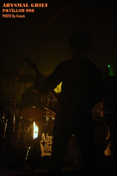 C’est donc le quatuor grenoblois de St Barthelemy’s Temple qui va ouvrir cette soirée. Voici un excellent groupe très au point que je ne connaissais pas. Bien qu’ils n’aient qu’un EP à leur actif, cela ne les empêche pas de faire figure de groupe très expérimenté qui ne souffrira absolument pas du ridicule devant les deux grosses affiches à venir. St Barthelemy’s Temple pratique un doom death particulièrement obscur au tempo souvent très lent. Le groupe est doté de trois excellents instrumentistes parfaitement calés qui font rugir leurs amplis avec des distorsions épaisses, écrasantes et grasses, tandis que le batteur cogne sur ses peaux comme si le cœur même du groupe battait au ralenti. Et là, par-dessus cette atmosphère qui vous enveloppe d’un ténébreux brouillard, le chanteur vient poser sa voix qui oscille entre un timbre totalement sépulcral et le hurlement du black metal. Les Isérois ne se cantonnent pas de jouer des morceaux plan-plan où il n’y a pas d’espace ni de brin d’air qui circule dans la partition. Non, ils savent intelligemment accélérer les tempos dans des breaks qui interviennent toujours au bon moment. Cela fait que leur musique n’est jamais ennuyeuse ou soporifique, comme c’est parfois le cas dans le doom metal. Leur empreinte sonore est un savant mélange de doom death teinté d’un black metal des plus vindicatifs. De plus, ils ont cette particularité d’avoir des titres relativement courts la plupart du temps, alors que dans la plupart des cas, les morceaux de doom death sont très souvent interminables. Pour moi c’est une excellente découverte avec ce groupe qui pour moi a de l’avenir s’il continue dans la même veine. Je vous invite donc à découvrir ce qu’ils font en suivant ce lien où vous pourrez écouter et télécharger gratuitement leur EP. http://stbarthelemystemple.bandcamp.com/ Mais ce n’est que le début de la soirée et je suis loin d’avoir tout vu et tout entendu car ce qui m’attend derrière va me faire l’effet d’un véritable électrochoc. C’est le ciel et tout ce qui va avec qui va me tomber sur la tête. Si dieu a créé la femme, alors il a dû créer en même temps les SaturninE. Nous sommes pourtant en pleine obscurité et elles vont me faire l’effet d’un manteau de lumière. Si Amenra qui est à ce jour à la pointe du sludge metal le plus extrême, s’ils ont leur équivalent au féminin, alors je pense en toute sincérité que ce sont les SaturninE qui sont incontestablement les mieux placées dans ce domaine. La musique des SaturninE est complètement émotionnelle, c’est un immense cri de souffrance qui vient du fond de leur âme. Elles sont un univers à elles toutes seules et leur empreinte sonore ne ressemble à personne. L’atmosphère qu’elles font régner sur scène est hypnotique et profonde. Si tu te laisses conduire au plus profond de leur monde déchiré et obscur, alors elles te volent ton cœur et ton âme. Leur musique t’aspire et t’expédie non pas pour un monde meilleur, mais pour un monde rude parsemé de larmes et de sentiments. En quelque sorte, les SaturninE sont l’autre côté du miroir, ce côté sans reflet, celui qui nous est inconnu et qui pourtant nous ressemble tant. Une obscurité quasi-totale est descendue sur l’Hôtel de la musique. Seules quelques bougies en bord de scène éclairent les filles d’une pâle lueur. Katrien est accroupie repliée sur elle-même lorsque tombent les premières notes du set. Lorsque sa voix extrême et totalement déchirante s’élève, une émotion intense se crée dans la salle, tant et si bien que le public se presse et se masse silencieusement dans la salle. A parler franchement, il y a longtemps que je n’avais pas vu autant de monde être aussi présent pour un set à l’Hôtel de la musique. La musique des SaturninE est à la fois d’un concept assez simple et pourtant redoutablement efficace. Le son est puissant, à la fois très ample, avec beaucoup d’espace. Même si elles ont un son très rude avec des distorsions puissantes et graves, elles n’en font jamais trop, tout est dans la retenue. A chaque nouveau morceau, les SaturninE montent d’un cran dans la rage, jusqu’à lâcher complètement les chiens dans les moments ultimes du set. Le triangle solide du groupe c’est Jex à la basse, Samantha à la guitare et Angelica à la batterie. Elles sont réellement l’axe fort des SaturninE et l’on sent qu’elles ont l’habitude de travailler toutes les trois ensemble. Elles sont en quelque sorte la respiration du groupe, la toile de fond sur laquelle Giulia vient poser sa guitare et ses solos incisifs et Katrien sa voix monumentale qui sait nous faire mal là où ça fait mal et nous envoute jusqu’à la transe. Oui je l’avoue, les SaturninE m’ont tué, m’ont volé mon cœur et mon âme. De plus, ces filles sont d’une grande gentillesse et d’une humilité sans pareil. Je vous invite à découvrir leur page facebook et à les aimer vous aussi. Leur nouvel album devrait sortir d’ici une ou deux semaines, achetez le les yeux fermés. Gardez quand même un œil ouvert par prudence pour ne pas vous casser la gueule … https://www.facebook.com/pages/SaturninE/122895697798357 Ce soir nous ne fêtons pas d’anniversaire et pourtant les bougies s’alignent sur la scène. Cela correspondrait au moins à l’anniversaire d’un centenaire si seulement en plus il y avait un gâteau. Mais il n’y en a pas, par contre il y a des fleurs. Finalement côté déco, Abysmal Grief fait plus dans le funéraire que dans le festif. On dirait également que l’on assiste à dix messes en simultané tellement il y a d’encens qui brule sur scène. Cela crée un brouillard totalement opaque tant et si bien qu’on se croirait à Manchester un soir d’hiver et en plus ça pue. Il y a même des flammes devant la batterie. Bref, le décor étant désormais planté, ce sont l