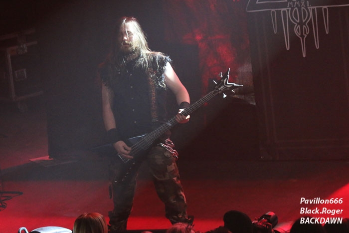 En effet dès 19heures, ils sont tous là, les thrashers invétérés, métalleux et rockers de tous poils dans une longue file d’attente dans le froid de ce printemps particulier. Mais qu’importe, tout ce beau monde a hâte de découvrir cette salle et, bien évidemment, les trois formations de thrash venues ici pour en découdre et nous plaquer contre les murs d’enceintes cela va de soi ! Ouverture des portes à 20heures, première formation sur scène dès 20heures trente, ça ne traine pas ce soir ! Honneur donc aux métalleux savoyards BACKDAWN qui ont la lourde tâche d’ouvrir les débats avant les deux formations cultes de la Bay Area aux « states », formations qui les ont certainement inspirés au départ de l’aventure. Alors ce soir, Chris, Tisa, Will et Drazel vont pendant seulement une petite demi-heure nous faire goûter à leur NWOTM (New Wave Of Thrash Metal) qui donne un second souffle au style, n’inventant rien, mais n’abimant rien non plus au contraire y ajoutant énergie et passion. Ils ont donc tout compris au film et depuis seulement 4 ans ils ont accouché d’un EP et d’un « full-lenght » intitulé « Through Extermination », tout un programme ! De plus ils ont déjà écumé bien des scènes notamment celle du Wacken open Air 2014 car se retrouvant vainqueurs de la finale française du W.O.A Metal Battle, et ayant ouvert récemment pour Behemoth en Suisse. Ce soir BACKDAWN fut découvert par beaucoup de monde et leur set a fait mouche. Peut-être qu’un peu plus de lights aurait contenté les photographes, c’est le seul reproche à formuler car ils ont su « chauffer » le public et c’est bon signe. Groupe à suivre de près car ces Savoyards ont toutes les cartes en main pour devenir un grand de demain, qui sait ? C’est au tour maintenant d’EXODUS de venir nous donner une bonne dose du fameux thrash de San-Francisco, thrash culte s’il en est depuis l’an de grâce 1980. Bien sûr ce thrash des 80’s a connu des hauts et des bas et EXODUS a de ce fait changé de line-up bien souvent. Mais depuis un an ou deux les vieux briscards de la côte Ouest profitent d’une certaine "embellie" du style et profitent donc de ce renouveau pour nous en mettre de nouveau plein la vue (et les oreilles aussi). Le guitariste Gary Holt (orange juice California sic) fidèle au poste depuis le début et Steve « Zetro » Souza revenu au chant après plusieurs aller-retours, se sont adjoint des acolytes puissants ne faisant pas dans la dentelle. Fatalement ce soir, le groupe va nous assommer avec son thrash destructeur de neurones. Les riffs des deux préposés à la six cordes Altus et Holt sont impressionnants d’efficacité et de puissance avec un Steve nous faisant profiter de son agressivité millésimée, micro en main. La patte Exodus est toujours reconnaissable entre mille évidemment, les soli lame de rasoir étant toujours placés au bon endroit, on savoure, on se délecte de ce thrash AOC. qui n’a pas pris une ride depuis le temps mais a encore gagné en maturité le poing rageur en l’air ! Au menu de la set-list des titres de leur nouvel album « Blood In Blood Out » comme « Black13 », « Blood In Blood Out », « Salt The Wound », « Body Harvest », mais aussi du plus ancien comme Bonded By Blood » et « Pirahna » Que du bon donc, de l’Exodus pur jus imparable avec un line-up en forme, une déco de scène remarquable et une prèsence incroyable, que demander de plus ? Rien, leur show fut remarquable à tout point de vue, un retour sur le devant de la scène inespéré, Exodus nous a surpris et remis les pendules à l’heure tout simplement. D’ailleurs le public ne s’y est pas trompé en déclenchant non-stop, circles-pit et walls of death dans la sueur et la bonne humeur, incroyable ! Second gros « morceau » de la soirée, voici après un certain temps d’attente tout de même, les vétérans du Thrash californien TESTAMENT qui se présentent à nous devant un décorum très remarqué avec un line-up de rêve à savoir Chuck Billy, Eric Petterson, Alex Skolnick, Steve Di Giorgio et Gene Hoglan. Que la tuerie commence donc dans une salle en ébullition et un public chaud et brûlant comme de la braise. Chuck Billy, Alex Skolnick et Eric Petterson ont tenu le coup depuis la création du groupe en 1983 et Gene Hoglan, Steve Di Giorgio sont venus plus tard compléter un line-up incroyable dans le style car étant des musiciens hors pair dans leur domaine. Alors ce soir, ce sera une destruction irrémédiable de ce qu’il nous reste de neurones avec des envois sans compromis, un son énorme et une chorégraphie scénique incroyable pour un groupe qui affiche tout de même plus de trente ans au compteur du metal. Le Cheyenne Chuck Billy (The Chief) et son bâton-micro lumineux dirige ses troupes pour un thrash rapide, nerveux et brutal même si un côté mélodique sous-jacent tempère par moments les morceaux avec bien sûr les refrains adéquats. Bon, soyons clairs, tout n’est pas extrêmement varié dans les titres proposés ce soir et à l’occasion on pourrait déceler une certaine linéarité et un manque d’inspiration en filigrane. Mais bon, la qualité d’interprétation, l’impact imparable des musiciens compensent le tout et au final c’est bien ce qu’est venu chercher le public ce soir, du metal qui tâche, qui vous éclate la cervelle sur un rythme d’enfer. Et cela a fonctionné au-delà de nos espérances. Chuck Billy et ses acolytes nous ont mis une bonne claque comme seul le thrash old-school pouvait le faire dans les 80’s, la technique en plus. TESTAMENT a donc prouvé encore une fois qu’il était toujours l’un des grands maitres du style californien tout simplement. Alors merci à ces vétérans de nous avoir fait passer un moment salement accrocheur cette nuit à Grenoble, un moment qui fera date j’en suis sûr. Set-list en photo. Réussite totale pour ce concert d’anthologie qui rest