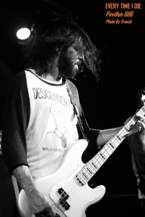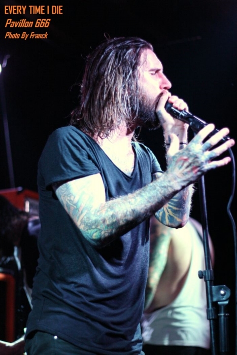 Je suis arrivé lorsque les garçons terminaient et j’ai juste croisé Clément et ses potes qui sortaient de scène, Clément avait d’ailleurs une magnifique serviette éponge made in Texas sur la tête, tant il devait faire frais sur la scène du Warmaudio. Du coup, ma soirée chronique démarre avec In Hearts Wake un quatuor australien qui nous vient de Byron Bay. In Hearts Wake pratique un hardcore mélodique parsemé de métal teinté d’une pointe indie. Le tout donne à leur set un côté très efficace avec un chanteur et un bassiste redoutablement présents sur scène. Bien entendu, comme c’est une soirée du genre service express et que les premiers groupes ne jouent que 25 minutes montre en main, c’est là que mon reflex trouve le moyen de se bloquer sans raison apparente et je n’ai pu faire d’eux que quelques maigres photos pas très réussies. Je continue tant bien que mal d’écouter le set des australiens tout en pestant contre mon appareil et en faisant des pieds et des mains pour le débloquer. Enfin bon, surtout des mains car dans la situation présente, les pieds ne servent pas à grand-chose. J’ai beaucoup aimé la qualité sonore de ce groupe complètement atypique avec cet étrange mélange des genres qui ma foi passe comme une lettre à la poste et se trouve être plutôt agréable à écouter. Ils arrivent à créer un véritable climat entre une musique posée qui soudain débouche sur un métal particulièrement enragé où les riffs ne font pas de cadeau. Ils viennent de sortir un tout nouvel album : « Skydancer », je vous invite à l’écouter sur iTunes. Vient ensuite le troisième groupe qui va faire une sacrée impression, il s’agit là de Counterparts, un quintet redoutable qui nous vient de l’Ontario au Canada. Oui, oui, petit côté bûcheron dans leur musique, mais rien à voir avec Roch Voisine. Pour tout vous dire, il s’agit là d’un hardcore plutôt sombre. Un set sans concession, ça allume de part et d’autre et à chaque morceau, les canadiens font feu de toutes leurs batteries. C’est désespéré, c’est hurlant, c’est violent si bien que Counterparts pourrait presque mettre un orteil au sein du plus violent des sludge metal. Ils sont animés d’une véritable énergie, même si celle du chanteur est plutôt dévastatrice. Il a beaucoup de charisme et va droit au contact avec le public. C’est pur, c’est dur, c’est musclé. Un guitariste soliste et un bassiste résolument efficaces donnent un réel élan au combo qui envoie presque sans respirer des titres qui arrachent comme pas possible et cela durant leurs 35 minutes de set qui m’auront parues bien courtes. Le meilleur moyen de découvrir Counterparts est de vous procurer leur tout nouvel album : « Tragedy Will Find Us ». Quoiqu’il en soit, sur la scène du Warmaudio, ça pulse et ça s’agite particulièrement ce soir. Pas de temps à perdre car 5 groupes c’est relativement dur à gérer et les changements de plateaux se font à toute allure. Ce sont maintenant les new yorkais de Stray From The Path qui prennent d’assaut la scène pour y balancer un hardcore alternatif aux sonorités résolument modernes. Bien loin des clichés désormais éculés des « coreux » qui se déguisaient plus ou moins avec des fringues de basketteurs, c’est sous les couleurs du FC Barcelone sur le dos que le chanteur envoie ses premières gueulantes. Bien croisé avec le rap, ainsi que des sons électro, leur musique a vraiment du caractère. La voix du chanteur fait également preuve de beaucoup de personnalité, c’est une voix relativement haute et cassée comme il se doit et cela colle parfaitement avec un hardcore qui sort complètement de l’ordinaire. Le quatuor est sacrément bien en place, chacun fait un énorme boulot au sein de Stray From The Path et ça envoie grave du lourd. C’est tout de même un hardcore qui même s’il est alternatif, reste particulièrement énervé. En tout cas, il porte très bien cette empreinte new yorkaise qui lui colle à la peau. Toutefois, il reste important de signaler que Stray From The Path sort un album courant août 2015 qui s’intitule : « Subliminal Criminals ». Je vous invite donc à écouter ce hardcore pour le moins rageur et original qui nous vient de l’autre côté de l’atlantique. Dernier acte de cette soirée placée sous le signe du hardcore sous toutes ses formes : Metal, dark, altenatif, post, mélodique, etc. etc. Ce sont donc les talentueux Every Time I die qui vont clôturer cet enchainement de sets tous aussi différents les uns des autres. Combo énergique, avec une musique bourrée de testostérone, ils envoient un hardcore aux reflets metal de type bien virulent. Cela va être 60 minutes non stop d’une musique qui tabasse comme pas deux. Le chanteur est assez charismatique, on sent que c’est bien lui qui tient les rênes du groupe. C’est vraiment un gros set et les musiciens sont à bloc. Ils ne sont pas qu’à bloc puisque pour certains il doit y avoir un petit plus, surtout lorsque l’on voit le guitariste soliste jouer certains phrasés la tête complètement appuyée contre le mur, ça sent la grosse fatigue ou une pause cérébrale peut-être. Le bassiste et le batteur donnent tout ce qu’ils ont et à fond en plus. En tout cas, ça transpire sur scène, ça envoie grave et c’est du costaud. Cet à ce moment là qu’il se met à pleuvoir dans le Warmaudio. Oui, oui, vous avez bien entendu, il pleut dans la salle, alors eau, bière, je ne sais pas, peut-être un peu des deux. Certaines taches sur les photos viennent de là. Désolé, je n’avais pas pensé à prendre de parapluie et l’objectif a dégusté. Du coup la chaleur monte et l’énergie ne fait que se démultiplier. Every Time I Die qui avait démarré ce set pied au plancher continue d’accélérer et le public s’en prend plein les dents ainsi que les oreilles. Keith Buckley au chant, est sans cesse en 