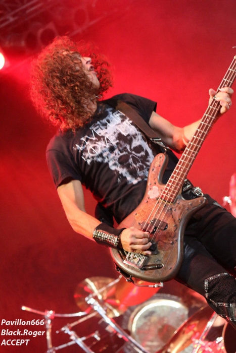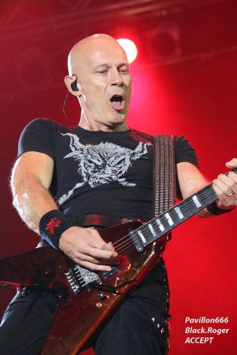 Et pourtant il y a quelques années on ne donnait pas cher de leur peau après le départ du charismatique Udo Dirkschneider, mais Accept a relevé le défi avec l’américain Mark Tornillo au chant qui a su combler le grand vide en 2010 avec tout d’abord la sortie de « Blood Of the Nation » suivit de « Stalingrad » et ensuite de l’accrocheur « Blind rage » l’an dernier. Et sur scène maintenant la machine métallique légendaire poursuit sa route avec la voix écorchée de Mark et les facéties guitaristiques de Wolf Hoffmann aux solos sans oublier le savoir faire à la basse de Peter Baltes.