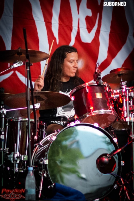 Je me rends ensuite rapidement à la second stage pour voir jouer les suisses de SUBORNED. Ils avaient joué à Metz il y a quelques mois en ouverture d’OVERKILL. Mais j’avais loupé la quasi-totalité de leur set pour raisons professionnelles.