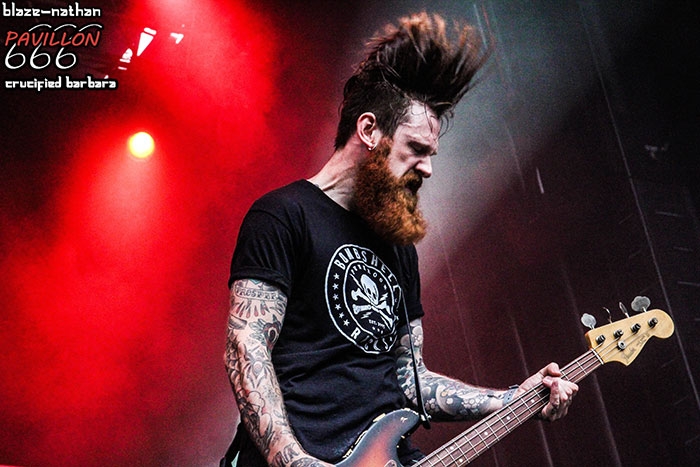 Samedi 08 Août 2015, seconde journée au SYLAK, une journée qui commence sur les chapeaux de roues à 11heures 35 avec sur scène CHARLIES FRONTIER FUN TOWN. Les Grenoblois vont placer la barre bien haute en ce début de journée avec leur « fuckin’ rock-metal » devant un public bien réveillé où qui n’a pas dormi la nuit dernière, public en nombre donc devant les « crash ». Que nous propose CFFT en fait ? Du rock ‘couillu », stoner si vous voulez, avec des dérapages métalliques, bref ça groove et ça « tabasse » sec ce matin à St-Maurice de Gourdans, on aime tout simplement. La suite se voudra plus « mortelle » avec du death old-school proposé par les Lyonnais de DISSIDENT SOLUTIONS. Le quintette ne révolutionne pas le genre c’est un fait, mais se fait plaisir en nous balançant du métal extrême influencé par les ténors du genre, Obituary, Bolt Thrower et Entombed, vous voyez le genre. Les musiciens ne sont pas nés de la dernière pluie et assurent comme il faut car ils pratiquent une musique qu’ils ont toujours aimé au final. Et cela se sent, cela se ressent au travers de leurs compositions et de leur chorégraphie scénique, cheveux au vent. Bravo les mecs vous avez bien assuré devant un public qui a répondu présent. Il est maintenant 13heures 35, l’heure de digérer son sabaudet aux pommes de terre (spécialité Lyonnaise) avec MACHETE, combo de Montaigu (la digue, la digue…) en Vendée. Après avoir joué au dernier Hellfest et s’en être très bien tiré entre parenthèses, Machete vient nous rendre visite sur la scène du SYLAK. Machete envoie du lourd, du stoner qui fait boum dans le sillage d’un Phil Anselmo quoi ! Le quatuor a tout comprit au film de « Nola » et nous balance des compositions simples mais travaillées avec soli à la clé pour enfoncer le clou de ce rock marécageux du bayou de Louisiane. Bonne découverte pour beaucoup, à revoir avec plaisir. Restons dans une veine stoner avec WO FAT, trio de cowboys « ricains » qui donnent dans le doom /psyché, le blues aussi. Avec une basse énorme raclant le plancher de la scène, une batterie groovy à souhait et une guitare lame de rasoir abusant de distorsions, un chant clair mais gras aussi, le trio fait un malheur en live. Avec aussi quatre albums au compteur déjà et une réputation grandissante à leur actif, les Texans vont créer la surprise et nous emmener loin dans leur délire puissant et fun à la fois, excellent donc ! La transition sera brutale à 15heure 35 avec les « coreux » de FIRST BLOOD, tout un programme avec un nom pareil ! Les californiens vont retourner la scène du Sylak cet après-midi a grands coups de moshs, breaks, avec des « jumps » dans tous les sens (mais où est passée ma godasse ?). Ces voyous « straight edge » représentent bien la nouvelle génération hardcore avec un chanteur charismatique qui sait tenir le public dans le creux de sa main. Et ses acolytes assurent dans tous les sens du terme, alors les « coreux » du Sylak et les autres curieux du public vont en prendre plein la « tronche », une tornade est passée sur le Stade Regis Perrin et l’on a aimé ça tout simplement. CHRONIQUE FRANCK – CRUCIFIED BARBA Les magiciennes de Stockholm sont enfin de retour chez nous et elles ont choisi le Sylak pour revenir, ce qui n’est pas rien. Les Crucified Barbara sont une véritable machine de guerre parfaitement huilée avec beaucoup de tournées et d’expérience à la clef. Les belles suédoises ne seront ce soir qu’au nombre de trois sur scène car Ida est forfait pour cause de maternité. Nous lui souhaitons au passage beaucoup de bonheur. Ida sera remplacée sur scène par un bassiste barbu (rires) dont je ne connais pas l’identité, mais je me suis laissé dire qu’il était le compagnon de l’une d’entre elles (info à vérifier bien entendu…). Quoi qu’il en soit, il a du bol, j’aimerai bien assurer l’intérim au sein d’un tel groupe de nanas, même si ce n’est que pour beurrer les sandwichs. Ne nous plaignons pas, il nous reste rien que pour nous les talentueuses Mia, Klara et Nicki (+ le barbu) qui vont nous envoyer un set absolument énorme que je peux désormais ranger dans mes archives rock du « ceukeujaivudeumieu » où sensualité et virilité féminine rivalise grave avec rock’n roll. Ces filles sont taillées dans le rock, elles sont faites pour ça, elles le maitrisent d’un bout à l’autre de la chaine, elles ont la grande classe. Les belles suédoises et leur barbu de bassiste vont nous retourner le Sylak dans les règles de l’art. Jeu de scène punchy avec un rock solide, mature et efficace, les filles vont mettre le public à leurs pieds et se laisser adorer comme les déesses qu’elles sont. Les fans, les adorateurs et divers festoyeurs leur ont réservé en offrande une véritable avalanche de peluches qui arriveront de toute part sur la scène durant leur set. Acclamées comme si elles jouaient à domicile, les Crucified Barbara ont une fois de plus gagné le cœur du public. Les suédoises ont sacrément mouillé le maillot et sont trempées comme si elles sortaient de la douche. Désormais elles sont de partout chez elles et le public leur est acquis. Leurs sourires traduits facilement leur joie d’avoir fait un saut au Sylak et l’on sent bien qu’elles ont du mal à quitter la scène. Après bien des remerciements, des paroles d’une grande gentillesse et un gros ramassage de nounours, les suédoises nous quittent à contrecœur pour laisser la place à Ultra Vomit. Je pense que nous les reverrons bientôt dans d’autres aventures. Merci les filles, vous êtes définitivement extraordinaires. En fin d’après-midi, on se serre devant les « crashs » pour assister et participer au set d’ULTRA VOMIT. Le public est toujours « accro » aux plaisanteries potaches des Bretons c’est un fait. Mais là je vous lâche un peu car je n’adhère pas du tout à leur d