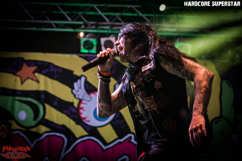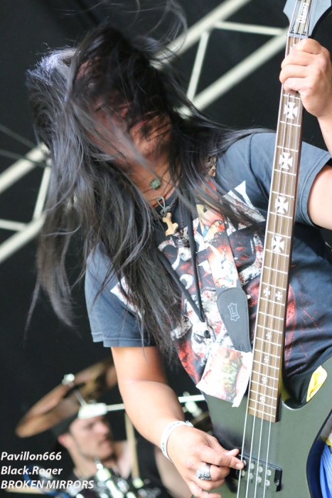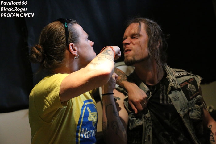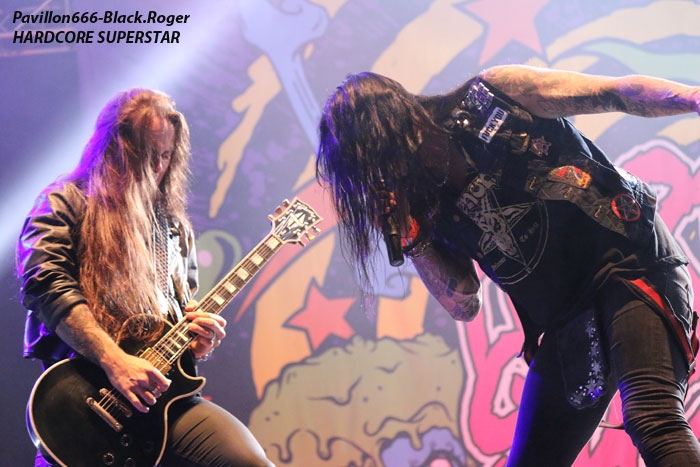 CHRONIQUES BLACK.ROGER On débute tard dans la journée après un repos bien mérité car il va falloir tenir tard dans la nuit. Alors à 16heures 40 rendez-vous avec les Finlandais de PROFANE OMEN qui investissent la grande scène prêts à en découdre avec le public du metaldays. La bande à Jules confirme et signe après les avoir vu pour ma part à Lyon en concert le 26 Mars dernier en première partie de Finntroll. Comme je l’avais dit à l’époque, sur scène ça « tabasse sec » avec leur death mélodique bien rock n’roll. Le set est propulsé par un frontman délirant accompagné de musiciens qui connaissent la « chanson » après 4 albums et des « live » à toute épreuve depuis une quinzaine d’année. Alors fatalement on aime et les 40 petites minutes qui leur sont allouées aujourd’hui nous ont paru bien courtes. On file maintenant vers la seconde scène car nous avons rendez-vous avec nos savoyards préférés BROKEN MIRRORS interrogés la veille ici à Tolmin. Ceux d’Annecy ont eu l’opportunité de venir jouer ici en Slovénie au Metaldays afin de nous présenter leur death/thrash mélodique, puissant, varié et bien en place. Leur second album de 2012 « The Universal Disease » avait en quelque sorte enfoncé le clou. Un troisième opus est déjà enregistré et va bientôt débouler sur vos platines. Mais en attendant savourons leur prestation Slovène d’une petite demi-heure je vous l’accorde, mais une prestation qui fut courte et intense selon la formule consacrée. Au menu dérapages heavy-prog, duels guitares-claviers, flirt avec le black sympho, thrash enflammé aussi, bref, les plaisirs auditifs sont variés avec eux. Alors, non ce n’est pas du cChildren of Bodom, mais bien maintenant du Broken Mirrors et ça fonctionne vraiment, on leur souhaite bonne chance pour la suite après cette démonstration nette, claire et précise. Je reste ensuite devant cette scène afin de découvrir MORANA qui envoie le son dès 17heures 35. MORANA est un groupe de death mélodique venant de Kranj en Slovénie et qui joue donc « at home » ce Jeudi après-midi. Death mélodique donc, mais en ce qui me concerne je pencherais plutôt vers du dark, d’ailleurs tous les membres du groupe sont en noir, c’est un signe, non ? Dépassons ce cliché pour nous intéresser à leur musique qui se vent sombre avec des textes inspirés de la mythologie Slave. Voix plutôt black, musique agréable mais sans accroche particulière. On se retrouve en terrain déjà conquit dans une veine folk-metal surtout. Prestation inspirée mais qui ne m’a pas apporté d’éléments nouveaux dans le style. Bon groupe tout de même qui fait son petit effet. C’est l’heure maintenant des interviews, alors on patiente dans l’espace VIP attendant le feu vert de l’orga du fest. Et c’est à 18heurs que l’on nous invite à monter dans la loge de BETRAYING THE MARTYRS. Ensuite à 18heures 30 ce sera le tour de PROFANE OMEN à répondre aux questions de Pavillon666. Quant à KATAKLYSM, pas de confirmation des interviews… Je retourne à nouveau devant la seconde scène, et par curiosité je vais essayer d’apprécier le show « lumineux » d’ADAM BOMB. En effet sur scène les « leds » sont présents partout, autour des amplis, autour de la batterie et sur la guitare d’Adam qui, coiffé de son chapeau, s’exprime derrière un pied de micro fleuri. Curieux bonhomme que cet Adam Bomb que l’on se doit de voir sur scène au moins une fois dans sa vie. Cette légende américaine du hard-rock, heavy-glam old school a débuté sa carrière en 1979 et a joué avec notamment Chuck berry, Johnny Thunders et Steve Stevens (Billy Idol ). Maintenant il écume les scènes du monde entier en trio avec bassiste et batteur. Alors sur scène cela donne quoi ? Et bien c’est plaisant, c’est un ovni du rock qui nous fait profiter d’un show pas « has been » comme on pourrait le penser. Avec Adam Bomb nous voyageons dans les couloirs du temps propre au hard-rock et c’est bien sympathique au final. VREID a déjà commencé de jouer sur la grande scène depuis un moment mais je ne peux m’empècher d’aller « shooter » le groupe depuis la foule et de revoir donc ces black-métalleux Norvègiens en live. Depuis une dizaine d’années et 6 albums ces musiciens des terres glacées du nord pratiquent un black se voulant évolutif entre passages prog et parties plus agressives dans une veine black n’roll. Ici pas de « corpse-paints » donc mais des musiciens nous proposant des compositions variées et sincères dans un style souvent dépouillé mais puissant et efficace. Vreid poursuit son chemin plus sombre et misantropique avec certains « flash-backs » puisés dans le traditionnel métal noir. Vreid est donc prenant et inspiré nous faisant profiter en live d’une présence indiscutable comme en avaient les groupes des 90’s dans ce style. Vreid a donc conquit le public sombre du Metaldays ce jeudi. Le vent tourne sur la grande scène, les styles aussi. Place maintenant au hard-rock-glam de HARDCORE SUPERSTAR. Et ça va être une déferlante de rock « speedé » qui va faire voler les chevelures et les « slammers » durant 1heure et 15 minutes, garez-vous ! Les Suédois de « Göteborg » donnent le ton en 1998 avec leur premier opus « It’s Only Rock n’Roll », je ne vous fait pas un dessin. Depuis lors ils collectionnent les récompenses « Awards » et écument toutes les scènes avec brio et présence folle indiscutable. Ils tournent actuellement afin de promouvoir leur dernier album « HCSS » qui n’a plus rien à prouver mais qui met comme d’habitude tous les « potets » dans le rouge et sur scène ça le fait grave avec une grosse dose de punch et de « rentre dedans ». De « Need No Company » à « Above The Law » en passant par « Wild Boys » et « Moonshine » nous avons dégusté dans tous les ses du terme. Une tornade rock endiablée est passée et 