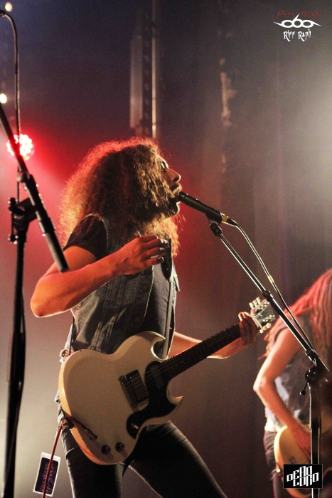 Notre groupe de suédois formé en 2012, lui aussi distillera du Hard Rock old school (soirée à thème ?). Cependant les influences sont tournées résolument vers Thin Lizzy, à la grande époque où Gary Moore et Phil Lynott jouaient ensemble. Tout y est, les parties guitares harmonisées, aux riffs simples et bien gras. Mais malgré cela la salle en début de concert est moyennement réceptive et ce n’est que progressivement qu’ils vont monter en puissance. Le charismatique chanteur Hakim Krim y sera pour beaucoup. Grimaces, pitreries et intermèdes en français pour haranguer l’assistance avec son regard fou et sa moustache à la mexicaine… Pas non plus de réelle surprise musicale cette fois-ci mais un show somme toute honorable.