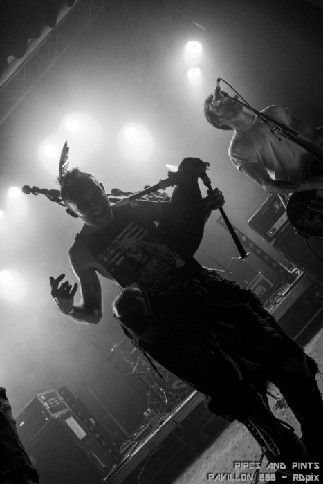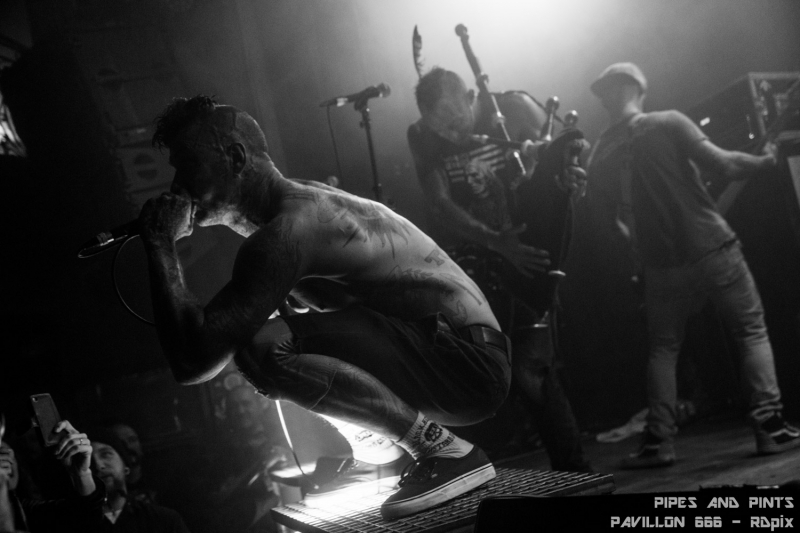 Ils ont ouvert le set avec “The Gael “, une mélodie traditionnelle Ecossaise reprise notamment pour la BO du Dernier des Mohicans. Le son de la cornemuse résonnait dans la salle et était amplifiée par le rythme de la batterie. L’ambiance était là, l’intro a fait son effet. Le calme avant la tempête. Aussitôt le morceau d’ouverture terminé, les premiers riffs se sont fait entendre et le rythme s’est fait beaucoup plus rapide. Les pogos ont commencé et le tempo était donné pour le reste du set.
