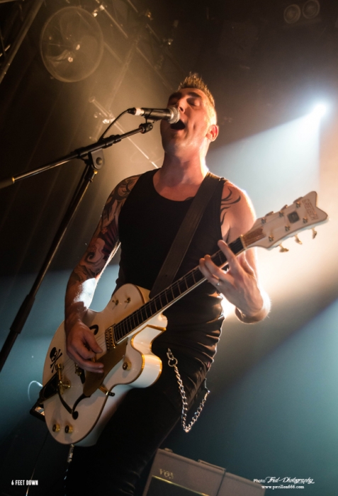 Décidément ça bouge en ce moment sur la région nantaise, après un début d’année assez pauvre en matière de concert metal, la fin d’année est riche en évènement. Ce soir, les bananes vont être de sorties avec le retour des Allemands de Mad Sin, déjà passés au ferrailleur en 2013. Ce groupe déjanté est un véritable habitué de la région avec quelques passages au Hellfest et au VIP, où j’avais déjà vu une prestation du groupe il y a 2 ou 3 ans. Je dois dire qu’un de leur point fort est une bonne humeur communicative et cela ne ratera pas ce soir, puisque, malgré un Koefte Deville en petite forme, le groupe arrivera à délivrer une prestation mémorable.