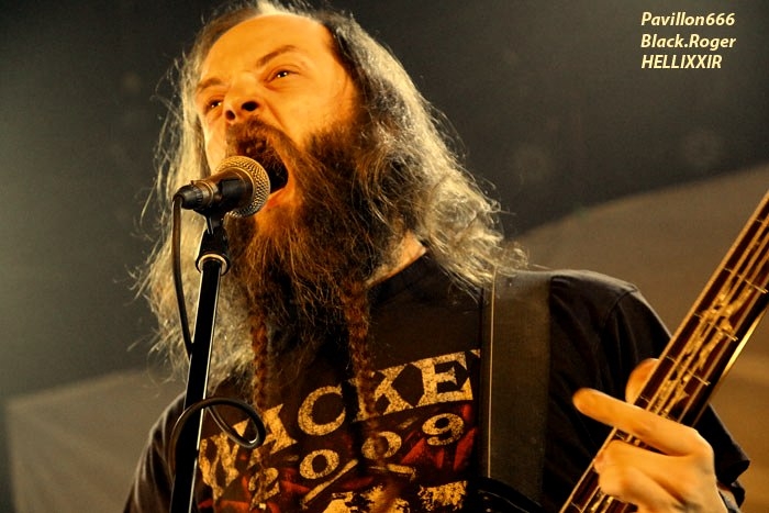 Alors, les Vosgiens de KRONOS, ceux de Chautagne SOUTH OF HELL, les « petits Suisses » de VOICE OF RUIN et les Grenoblois d’HELLIXXIR vont s’en donner à cœur joie sur les planches soutenus par un nombreux public d’amis, de fans ou de curieux tout simplement, avides de gros son et de riffs meurtriers, du brutal métal quoi !. Que la soirée commence donc, il est 20heures trente et nous sommes impatients de voir tout ça. HELLIXXIR ouvre le feu avec son thrash/death efficace et redoutable en live, mais pas que. En effet Hellixxir a le don de ne pas nous offrir deux compositions semblables à la suite, il sait varier les plaisirs en flirtant avec le heavy parfois mais surtout avec le black. Le groupe sait rester sombre et tranchant dans sa musique comme dans ses textes, le tout faisant mouche évidemment avec ces soli vicieux qui vous prennent à la gorge avec une certaine agressivité sous-jacente. Le frontman nous envoie ses « growls à la figures mais aussi ses vocaux black, soutenu par un vocaliste bassiste très présent et les deux guitaristes tissant leur toile « riffue » pour nous emprisonner l’esprit. L’édifice ainsi construit étant renforcé par un batteur convaincant, que demander de plus ? Si, une bonne reprise du fameux « Refuse/Resist » de Sepultura bien appréciée. Ce groupe qui depuis plus d’un an a remanié son line-up prend à chaque concert un peu plus d’assurance, preuve en est encore ce soir où le quintette nous en a mis plein la vue et les oreilles cela va de soi, on aime tout simplement. Set-list en photo. Nos voisins Suisses de VOICE OF RUIN vont essayer de retourner la salle en jouant à l’énergie, l’énergie « sautillante » du deathcore évidemment et ça va « mouliner » illico devant la scène dès le départ. En seulement 7 ans, ceux de Nyon au pays des « coucous », et deux albums, « Voice of Ruin » (2011) et « Morning Wood » + l’EP de 2015 « Consumed » + une tournée au Japon + des concerts incessants, les Vaudois ont mis tout le monde d’accord dans la mouvance deathcore pourtant bien surchargée depuis quelques années. Randy et ses acolytes ont vite fait la différence en nous proposant un son sorti des sentiers battus c’est un fait. Du coup le combo des bords du Léman nous prend à la gorge dès le premier titre en live. Et ça part alors dans tous les sens, ça courre sur scène guitares en l’air avec un frontman venant non-stop au contact du public, cheveux en l’air. Ici pas d’émocore, pas de « pleurnicheries », ça tabasse sec, c’est rapide, ça tranche comme le thrash, ça arrache comme du grind/death parfois mais toujours avec un fond sonore de mélodies piquantes. Mais sous un aspect simpliste et lourd parfois des compositions se cachent des musiciens hors-normes en support des « aboiments » et des « growls » du frontman. Bref avec eux nous ne savons plus où donner de la tête, ils ne sont pas Belges pourtant mais ont une frite d’enfer, argh ! Conclusion un set sans faille, redoutable, hargneux mais aussi jouissif en diable. Vous revenez quand vous voulez pour défoncer la scène, incroyable ! Set-List en photo. Les Savoyards de Chautagne voisine, SOUTH OF HELL (dont le guitariste est également organisateur du concert de ce soir) vont nous offrir un set particulier. En effet, leur chanteur s’étant « éclipsé » de la formation, ce soir le groupe jouera avec la voix du batteur qui est équipé d'un micro-casque. Mais rassurez-vous ça va faire mal quand même, le quatuor va se donner à fond avec ses instruments et nous proposer un death-métal old-school peut-être mais très travaillé, le côté technique magistral n’occultant pas l’efficacité de leurs compositions. Ces compositions provenant en grande partie de leur nouvel album « Rising Of Hate » bien accueilli par la critique soit dit en passant, compositions qui seront interprétées ce soir + de nouveaux morceaux. Leur performance va attirer un nombreux public arrivé durant le set des 2 premiers groupes et faire rentrer ceux de dehors + les retardataires ayant prolongé « l’apèro » du Samedi soir avant de venir. Bref, la salle est presque remplie pour SOUTH OF HELL et ce nombreux public présent en a eu « pour son argent ». En effet il semblerait que la formation Savoyarde aie franchit un nouveau palier dans l’efficacité en live, c’est tout simplement époustouflant, j’ai entendu le mot « tuerie » prononcé dans la salle, pourquoi pas ! Après leur signature chez un label et la sortie de l’opus nouveau nous leur souhaitons tout le bien qu’ils méritent, charge pour eux de retrouver (ou pas) un nouveau chanteur pour avancer encore et encore, excellent ! KRONOS à Belley ? Pourquoi pas, en tous cas ce soir ils joueront en tête d’affiche tout simplement, notoriété oblige. Les Vosgiens ne sont pas venus ce soir à l’Espace Rameaux pour nous sussurer de belles berceuses roses et édulcorées, mais pour nous balancer dans les dents leur brutal-death sans concession. Je n’avais pas revu la formation, depuis le départ de Kristof au chant, mais j’ai été surprit par la voix du nouveau frontman Loïc « Trivette » (ex-Diluvian), les anciens Tom et Jérôme étant les « gardiens du temple antique » du son Kronos. Car oui, ce groupe qui avait débuté il y a presque 20 ans déjà a marqué à tout jamais la scène death frenchie avec ses références à la mythologie Grecque surtout avec les pochettes de ses nombreux albums dont le dernier en date « Arisen New Era » dont le groupe nous fera l’honneur ce soir d’inclure dans sa set-list bon nombre des compositions. Kronos, après un certain « stand by » du aux changements de personnel nous reviens donc encore plus fort, avec des titres plus complexes, plus techniques aussi, mais dont le rendu en live vous colle contre les murs de la salle de concert. Au menu, riffs massifs, changements brutaux de rythmique, break lourds de conséquence