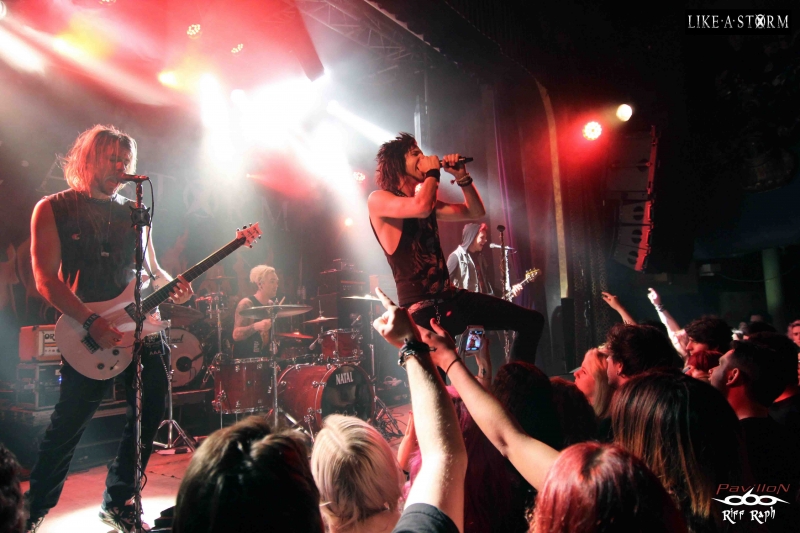 LIKE A STORM Comme la soirée fut bien fournie, je vous propose d’attaquer tout de suite par un petit voyage vers la Nouvelle-Zélande. Très bonne découverte pour cette formation qui vient enfin faire un tour dans l’hexagone. Une affaire de famille car sur le devant de la scène ce sont les trois frères Brooks, Chris, Matt et Kent avec Zach Wook derrière les fûts. Dès les premiers morceaux on sent que ce groupe a un énorme potentiel. Avec une balance et un son parfait ils vont nous interpréter sur ce court set des compos mélodiques de grande qualité. Mélange de Hard FM à la Bon Jovi, de hard rock groovy teinté de partie bluesy à la guitare. Le tout avec une pêche et une fraîcheur agréable à regarder et à entendre. Chris, notre frontman nous fera également partager le son du didgeridoo, célèbre instrument traditionnel des aborigènes du nord de l’Australie pour un Jam sympathique. L’imparable « Love the way you hate me » clôturera un set bien trop court. Un très bon concert de nos Kiwis. SetList Like A Storm : 01.Chaos 02.Six Feet Under 03.Didgeridoo and Drums Jam 04.Become the Enemy 05.Wish You Hell 06.Love the Way You Hate Me FEARLESS VAMPIRE KILLERS Les roadies font vite car il faut enchaîner rapidement les plateaux pour cette longue soirée. Sous ce nom étrange de Fearless Vampire Killers se cache un jeune groupe anglais qui nous délivrera une sorte d’opéra-rock teinté de riffs parfois hardcore ou pop rock. Une sorte de valse funèbre mais interprétée avec bonne humeur. Les refrains comme ceux de « Say what you want from me » seront convaincants même si par moments j’ai trouvé la voix de Sean Ainsworth un peu limite en justesse et puissance. Néanmoins la reprise d’Elton John I’m Still Standing est intéressante et plutôt bien réussie. Un groupe pas très facile à cerner sur six titres mais dont la prestation et la présence scénique fut plus qu’honorable. SetList Fearless Vampire Killers : 01.Say What You Want From Me 02.Maeby 03.I'm Still Standing (Elton John cover) 04.All Hallow's Evil 05.Neon In The Dance Halls 06.Unbreakable Hearts NEW YEARS DAY New Years Day en est déjà à son troisième album. Nos Californiens, emmenés par la charmante frontwoman Ashley Costello avec son chant qui alterne entre celui d’Evanescence et de In This Moment. Après le très remarqué dernier album « Malevolence », le groupe avait à cœur de défendre quelques titres de ce dernier opus. Dans la foule les jeunes fans sont là, ils scandent le nom de la formation américaine et ce public averti n’aura de cesse de chanter les paroles et de reprendre les refrains en cœur. Kill or be killed ouvre le bal. Comme beaucoup d’autres compos, elles sont taillées pour l’hymne joyeux et catchy, facilement mémorisable et d’une redoutable efficacité. Des riffs sont un mélange de néo-metal et de hardcore accentués par une section rythmique basse/batterie qui donnent ce côté péchu aux mélodies. Le show est millimétré et la maturé du combo n’est plus à mettre en doute. Le son est propre, clair et bien mixé. Tous les membres sur scène assurent le spectacle et ne ménagent pas leurs efforts. Graig d’Escape The Fate viendra le temps d’un morceau prêter ses vocalises pour le plus grand plaisir de la fosse qui ne ménagera pas son enthousiasme et ses hurlements. Autant dire que le set fut réussi et que maintenant la place est faite pour la tête d’affiche tant attendue… Setlist New years day : 01.Kill Or Be Killed 02.I'm No Good 03.Other Side 05.Malevolence 06.Angel Eyes 07.Defame Me ESCAPE THE FATE Avec cinq albums au compteur dont le dernier « Hate Me » qui n’a pas vraiment fait l’unanimité chez les médias, il me semblait intéressant de voir comment le groupe allait défendre sur scène les morceaux du dernier opus. Il est vrai que la vie mouvementée de la formation n’a pas aidée et du LineUp original il ne reste guère plus que Robert Ortiz derrière sa batterie. D’ailleurs la setlist fera surtout la part belle aux anciennes créations. Ce qui avouons-le est un peu la façon de faire de nombreuses formations en tournée. C’est par l’intro en sweeping « Just a memory » que débute le concert sous l’accueil bruyant de la fosse qui rend bien mieux en live que sur CD. Bon point également pour « Breaking me down » qui sonne un peu Papa Roach. Les autres titres de « Hate Me » sonnent aussi plutôt bien en concert et on peut dire que les choix ont été judicieux. Pour ce qui est des autres morceaux pas la peine de vous faire l’article, de toute façon la salle était déjà toute acquise à la cause. Même si je suis sûr quelques fans de la première heure gardent toujours en souvenir l’époque de Ronnie Radke (aujourd'hui à la tête de Falling In Reverse). Rien à dire au niveau scénique, tout le monde fait le max pour entretenir la flamme avec le public. L’ambiance est bon enfant et positive aussi bien sur les planches que dans la salle. Graig après le rappel se fera plaisir sur « This War is ours » en faisant le saut de l’ange sur la foule depuis le balcon du divan du monde. Une bonne prestation qui prouve - malgré l’interrogation de certains chroniqueurs sur l'avenir du groupe – que nos américains sont toujours là et qu’ils savent mettre le feu en live !!! Et que, comme toujours, c'est le public qui décide... SetList Escape The Fate : 01.Just a Memory 02.The Flood 03.10 Miles Wide 04.Ungrateful 05.Live for Today 06.Alive 07.Ashley 08.Something 09.Remember Every Scar 10.Gorgeous Nightmare 11.One for the Money Rappel : 12.The Guillotine 13.This War is Ours (The Guillotine II) Pour terminer mes remerciements à Alternative Live pour cette bonne soirée, l’invitation et l’accréditation photo Pour des raisons de confidentialité YouTube a besoin de votre autorisation pour charger. Pour plus de détails, veuillez consulter nos Politique de confidentialité. |