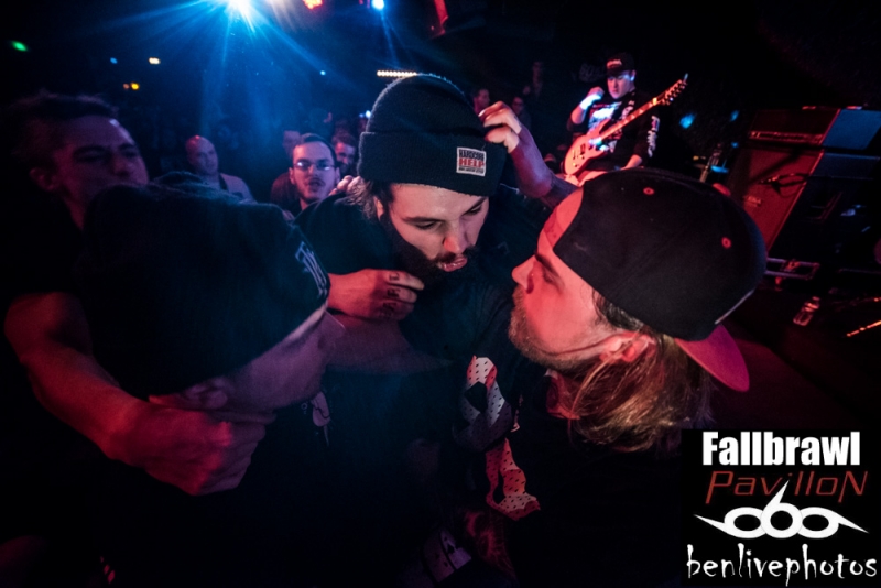Entre le temps d'attente et l'arrivée dans la salle, Wolfpack a déjà commencé son set mais ils leur en reste encore quelques titres sous le pied. Wolfpack a donc été choisi pour remplacer Kublai Khan. Ils viennent tout juste de sortir leur premier album "None Above/None Equal" chez les ricains d'Eulogy Recordings, ce qui est quand même classe. Ce soir ils sont chez eux au Gibus, en effet ils y ont joué quand même un paquet de fois. Hadrien, le chanteur a beau mettre du coeur à l'ouvrage mais non le public ne semble pas vouloir se "déhancher" tout de suite. Leur beatdown est quand même sacrément heavy, la voix d'Hadrien est caverneuse même si parfois elle semble fatiguée. Il faut dire que c'est leur 15ième date sur la tournée. Les deux gratteux maîtrisent parfaitement et le batteur est comme à chaque fois, bien déchaîné. La basse permet de les lier entre eux avec un son correct. La "negative attitude" est bien mise en scène lorsque qu'Hadrien simule une pendaison avec son micro ou bien lorsqu'il tourne le pousse vers le bas pour le public. Et puis, Paul, chanteur de Desolated débarque pour un featuring, cela, ajouter à l'abnégation d'Hadrien envers le public fait enfin son effet. Et les premiers coups de pieds et moulinets partent ici et là. Ambiance hardcore dans le pit, on aime. Rob Watson, chanteur de Lionheart regarde attentivement le set, qui se termine assez vite finalement. On sent un peu de déception pour Wolfpack concernant l'ambiance quelque peu frileuse bien que la fin du set fût énorme. Le second groupe vient d'Allemagne. Il s'agit de Fallbrawl. Après avoir vu quelques vidéos sur le net, il ne faut pas s'attendre à autre chose que du beatdown proche du death. Les balances permettent de sentir un bon son bien lourd, bien bourrin. Le set démarre sur les chapeaux de roue mais la voix n'est pas si basse que ça. En fait, le set est même assez varié, ce qui permet de casser une certaine linéarité. En tant que photographe, maintenant il faut scruter la scène et le pit car ça part bien vénère cette fois. Wolfpack a réussi à réveiller nos petits coreux qui se lâchent bien plus sur Fallbrawl. Les titres s'enchainent à coups de blast, et autres harmonies artificielles içi où là. Fallbrawl sonne un peu plus hardcore en live, peut-être est-ce dû à l'attitude? Le bassiste de Desolated viendra faire un featuring voix sur "All Will Suffer" mais il semblait limite tout de même. Cette fois c'est sûr, la soirée et belle et bien lancée. Desolated ne devrait pas tarder de débarquer sur la scène. Desolated partageait déjà l'affiche avec Lionheart lors de la tournée du "Taste Of Anarchy", donc pas étonnant de voir ces deux formations sur la même affiche cette année. Style vestimentaire assez "vintage" pour l'un des guitaristes et le bassiste mais l'habit ne fait pas le moine et je vous assure que leur son n'est pas oldschool! Déjà la basse envoie un super son, encore un featuring avec le chanteur de Fallbrawl sur l'un des premiers titres, les gratteux assurent aussi les backing vocals. Là aussi, la participation du guitariste et du bassiste concernant la voix permet d'envoyer pas mal d'énergie. Le chanteur de Fallbrawl avait gardé suffisamment d'énergie pour slammer à tout va. Faut-il vous expliquer la réaction des fans? Paul, le chanteur joue bien avec le public et les photographes. A noter que c'est Nash, batteur de Nasty, qui assure la tournée, toujours à la batterie pour Desolated. Le set se termine dans la joie et la bonne humeur, avec certainement quelques bleus et contusions pour certains mais cela ne gênera en rien pour accueillir la tête d'affiche Lionheart, avec une salle pleine. Lionheart, ce groupe californien qui vient de sortir "Love Don't Live Here", est enfin en tête d'affiche d'une tournée. Il faut dire que leur son est hyper tranchant, avec des paroles qui tapent là où il faut et un frontman plein d'énergie et un corps taillé à la perfection! Du coup ça part direct, pas de chichi, la sauce est envoyée, la foule est au taquet, stagedive à gogo mais pas trop de place pour le KDS, après il suffit d'en faire...Les 4-5 premiers titres s'enchainent sans coupure, les refrains sont bien repris par les fans lors des nombreux "sing along" notamment sur "Rest In Power". Rob Watson montre donc son torse, ce qui ne laisse personne de marbre. Les salles de muscu vont certainement connaître une recrudescence de coreux si ce n'est pas déjà le cas! Beau bazar sur la scène. Petit moment de frayeur lorsque l'un des guitaristes quitte la scène, mais même si on ne saura jamais pourquoi, il reviendra rapidement pour continuer. On aura droit à une intervention pleine de hargne au micro de la part de Soufiène, chanteur du groupe straight-edge parisien Mind Awake, sur "Brother's Keepers". Lionheart joue avec le public pour les rappels et ils finiront le set avec le mythique "LHHC". C'est donc dans un gibus transpirant que ce show se termine. Les prestations des groupes font plaisir à voir et Lionheart a pu montrer qu'il était devenu l'un des groupes majeur de la scène hardcore métal. Le public a répondu présent même s'il aurait pu être un peu plus démonstratif avec les locaux de Wolfpack. Il serait maintenant intéressant de voir ce même public supporter la scène hardcore locale en participant de la même manière aux concerts underground proposés dans la région. Un grand merci à l'équipe de Pavillon ainsi qu'à Erika de One Heartbeat Productions pour l'accréditation photo. |