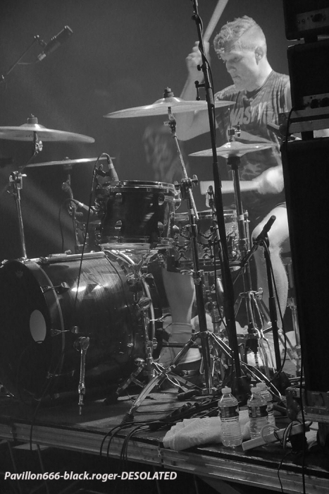 Les parisiens de WOLFPACK vont occuper la grande scène du totem durant à peine une demi-heure avec leur heavy-métalcore char d’assaut. Leur dernier clip vidéo « Sew Your lips » avait dû vous donner une idée de leur son avant ce concert préfigurant la sortie de leur premier album « Aucun ci-dessus/aucun égaux ». Alors en live, ça donne quoi ? Et bien c’est du hardcore-beatdown avec tous les clichés du style avec une lourdeur héritée d’un Entombed par exemple. Le milieu de la salle ne tarde pas à se muer en démonstration de karaté, moulinets, vols planés et 2-steps, le reste de l’assistance gardant ses distances au fond comme des cierges de pâques. Le set des Parisiens fut court soit, mais pas avec l’intensité que l’on aurait pu attendre d’eux, fatigués ? Mais respect pour avoir ouvert le feu à Rilleux ce qui n’était pas gagné d’avance, le gros de la troupe des « coreux » étant encore dans les bouchons de Lyon peut-être ? Peu de temps après, avec encore un peu plus de monde dans la salle de sport, ce sont les Allemands de FALLBRAWL qui branchent grattes et micro afin de se lancer sans tarder dans ce petit « baluche » du mercredi soir, tu « guinches » ? Si Wolfpack délivrait un hardcore bien heavy, celui de nos amis d’outre-rhin va se révéler encore plus lourd et plus bourrin ce qui n’empèchera pas nos « coreux » Lyonnais d’accentuer leurs ébats physiques, ambiance ! Déjà trois albums au compteur pour ceux de Dusseldôrf qui à l’aide de leur hardcore plombé mettent leur pays à feu et à sang depuis une dizaine d’années déjà. Et ce soir en live, c’est la même, la même lenteur ravageuse se terminant en chaos (cf leur dernier album de 2015). Des parties de gratte aventureuses viennent calmer les ardeurs du frontman qui passe volontiers de déclamations à des « growls » les plus caverneux. Alors, plus death que hardcore ou deathcore ? Non, ici on parlera de hardcore métal musclé tout simplement qui fait un tabac ce soir dans une assistance pure et dure voyons ! Fallbrawl a convaincu avec son set efficace aux titres variés dans une ambiance assez sombre dirons-nous. Les Anglais tireront en troisième position ce soir. Mais quels britishes ? Ceux de DESOLATED voyons avec pour le frontman un fusil d’assaut brodé sur son bonnet. Alors, « anarchy in the UK » ? Pas exactement mais de la hargne, de la rage au menu pour ce combo d’outre-manche qui a décidé notamment, avec la sortie de son dernier « méfait » intitulé « The End », de nous coller au plafond à l’aide de riffs monstrueux, sur des tempos d’enfer portant haut l’image du punk/metal/hardcore qui nettoie tout dans les salles de concert comme une tornade noire. Noir comme notre peine, rouge comme notre sang, vous avez tout comprit. Alors fatalement en live c’est une violence sonore infernale qui est lâchée avec un frontman qui n’a de cesse de faire répéter ses paroles incisives à ceux des premiers rangs. Résultat des courses, une prestation implacable, pimentée de slogans revendicateurs. Ils n’ont pas fait dans la mélodie ce soir et l’on en attendait pas moins de ces Anglais énervés qui jouent depuis une dizaine d’année dans tous les endroits possibles et inimaginables, excellent en live ! La salle est maintenant bien remplie et les « coreux » sont brûlants comme de la braise pour accueillir LIONHEART. Et le public ne va pas être déçu du voyage avec ces Californiens qui défraient actuellement la chronique notamment avec leur dernier opus en date « Love Don’t Live Here » qui marque un retour discographique attendu depuis 4 ans. L’arrivée du frontman sur scène tous muscles et tattoos dehors fait frémir les petites jeunes « coreuses » d’entrée de jeu (à entendre leurs commentaires…). Mais parlons musique avec ces « ricains » qui certes n’ont rien inventé dans le style mais y ont rajouté des éléments bien personnels, une énergie folle, une musicalité « direct in your face », un côté fusion à la R.A.TM. et un son à vous faire saigner les oreilles. Le frontman très décontracté joue en permanence avec son public, va le chercher, le pousse dans ses derniers retranchements. Et derrière lui « ça tabasse sec », les grattent hurlent et le duo basse-batterie vous atomise littéralement, quelle claque ! Des grappes de « coreux » s’accrochent au micro du chanteur sans répit, l’ambiance est à son comble, mais où est passé mon smartphone où ma godasse ? Le beatdown hardcore, mélange de NYHC hardcore à la Madball et de death-métal est ici bien convaincant, pas besoin de vous faire un dessin, ce groupe fait merveille en live, la relève ? Le hardcore « old-school » en est tout retourné on dirait, mais le principal c’est bien d’avancer n’est-ce pas sans rien renier de nos aînés. Prestation excellente donc ce soir Ö Totem et mon seul petit regret fut la longueur du set un peu court à mon goût, mais ne crachons pas dans la soupe hardcore, les californiens devraient faire parler d’eux de plus en plus il me semble avec des « live » pareils ! La soirée fut donc agitée, bon son, bonnes prestations, que demander de plus ? Merci à Médiatone Lyon organisateur des festivités, merci aux 4 formations qui se sont donnée à fond, et merci au public pour cette ambiance incroyable, ça fait plaisir à voir ! |