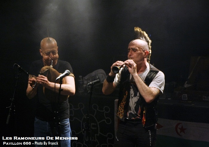 Pendant ce temps là sur scène la tempête bretonne ne faibli pas et le vent va grossissant. Les Ramoneurs naviguent vent arrière et ça défouraille sévère d’un morceau à l’autre. Eric et Richard, les talabarders et sonneurs s’en donnent à cœur joie à souffler dans les bombardes et les binious koz qui font tout le charme de cette musique énergique et entraînante.