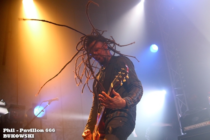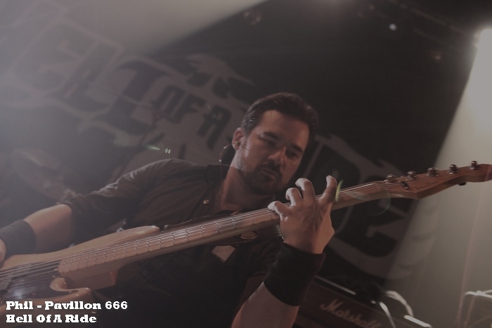 Frantic Machine entre en scène avec une assistance peu consistante, ce n'est pas pour autant un handicap pour le quartette qui va envoyer des brûlots et commencer à attiser le brasier. Les musiciens en place proposent un set relativement court mais efficace. Le heavy metal dissipé n'est pas sans rappeler des formations britanniques et américaines cultes, l'attitude et la tenue du micro de Seb peut nous faire penser à un certain James Hetfield, cela n'est pas un point de blocage et permet de profiter et d'assister à un show intéressant et entrainant. Le public arrivant en cours de prestation se constitue tout au long de cette mise en appétit. Un ensemble sympathique qui demande à finaliser sa voie. Hell Of A Ride commence à faire son nom au sein de la scène régionale, pour ceux qui connaissent la formation, on est dans l'attente d'un show animé et agité. Que ce soit au niveau musical, que du coté de la prestation, l'assistance est face à un groupe qui maitrise son sujet. Bien que certaines attitudes soient connues et nous conduisent vers des instants issus des 80's par les postures de son bassiste, Franck "The Gent". Hormis ce détail qui est plutôt agréable visuellement, on se prête au jeu et aux compositions distillés. L'ambiance sulfureuse engagée par Frantic Machine est entretenue par le quintette qui n'a pas fait le voyage pour rien. Intercaler entre un prometteur et un confirmé, Hell Of A Ride est un véritable méritant tant sa musique et son énergie vous captivent. Les influences, qui sont assimilées et digérées, ne nuisent pas à la prestation, cette mise en scène volontaire est fort plaisante. Une formation à suivre de près. Bukowski n'est plus à présenter et doit rapidement être en place tant la scène est bouillonnante. Du fait des festivals et officiant avec Mass Hysteria, Fred est remplacé par un second dreadlocké, Clément. Lourde tâche de prendre le relais, mais honorable et respectueuse levée d'arme assurée par le six cordiste. Comme de coutume, les musiciens mettent le feu aux planches, réveillent un volcan endormi, le temps du changement de plateau, dans la fosse. Les Bukowski savent réunir à la cause de groupe une assistance, cette attitude crée une véritable addiction qui développe une communion entre la scène et le public. Cette union est partagée de part et d'autre car chacun vient au plus près des musiciens avec une certaine joie partagée, puis Julien n'hésite pas à fouler la fosse pour un moment de partage captivant. Soudés les metalleux de l'Empreinte répondent aux sollicitations des Bukowski. Mathieu joue avec ses fidèles et transpire son bonheur sans modérations, cette liesse gagne les autres membres du groupe et alimente l'agitation de l'assistance. Parfaitement réglé musicalement et montant en intensité, la salle devient vite une fournaise face aux bûches enflammées projetées par le quartette. Sans fioritures mais uniquement sous les coups du véritable Rock attitude voire punk rock, l'Empreinte profite d'un show électrique et communicatif. La saison se clôture encore une nouvelle fois de fort belle manière. L'Empreinte par sa dimension et sa proximité est une salle qui permet de découvrir et de savourer des instants particuliers. Pourquoi se passer des tels moments? Attendons les prochaines annonces pour prolonger ces concerts magiques. |