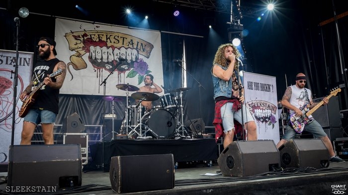 On commence les hostilité à 14h30 avec des groupes locaux. Les premiers à monter sur scène sont SLEEKSTAIN. Il fait encore beau mais le public n'est pas encore bien nombreux. Cela n'empêche pas le combo de distiller son rock de manière efficace. Les influences viennent des années 80 et de la vague glam bien représentée par MOTLEY CRUE. Le résultat est là. DREAD UNION BLOOD arrive dans la foulée avec un style nettement plus costaud. C'est quelque part entre DOWN, KORN et le sludge qu'il faut chercher. Le ton se durcit mais l'efficacité est au rendez-vous. Avec des riffs groovy et un son particulièrement grave, DREAD UNION BLOOD entraîne le public dans un mosh que même la pluie n'arrêtera pas. Ce combo encore jeune et seulement pourvu d'un EP en poche a de quoi se montrer convaincant autant musicalement que scéniquement. Je ne doute pas que nous les reverrons sur la région périodiquement. La pluie s'arrête pour nous laisser profiter du set de HAPPENING. Ce groupe d'Aix Les Bains distille un metalcore que l'on apprécie bien dans la région de Lyon, en particulier lors du LongLive Rockfest. On retrouve ces riffs typiques groovy et pas forcément des plus simples sur un point de vue de la stricte rythmique. On retrouve une bonne énergie dans cette prestation emmenée par un trio des plus motivés. TRY AGAIN est le dernier groupe local à se produire sur cette scène avec un son nettement plus punk. Il s'agit pour ce groupe de sa dernière prestation sous cette forme. En effet, le bassiste a décidé de quitter le navire et TRY AGAIN s'est aussi mis en quête d'un deuxième guitariste. Le groupe semble avoir néanmoins le soutien de la scène locale car c'est en masse que le public s'est rassemblé devant la scène. Là encore, c'est un groupe de qualité qui assure une bonne prestation, bien dynamique. Lemmy de MÖTÖRHEAD est décédé en décembre 2015 pour ceux qui habiteraient sur une autre planète et qui viendraient juste de nous rejoindre. Son empreinte sur le monde du rock a été telle qu'on lui a construit des statues en son honneur, et pas qu'au Hellfest. IRON BASTARDS, cette formation de Strasbourg, n'a pas échappé à la vague colossale qu'a généré MÖTÖRHEAD pendant près de 40 ans au point que même physiquement IRON BASTARDS en a subit les influences. On ne peut pas dire qu'IRON BASTARDS ait fait preuve d'une grande originalité en suivant les pas de géant laissés par les maîtres du hard rock. Mais bon, il faut reconnaître que ça fonctionne, et même plutôt bien. Le son est là, le chant aussi et bien entendu, une très grosse énergie se dégage de tout ça. On a même à une petite reprise et si mes souvenirs sont bons, il s'agit de « Iron Fist ». Les toulousains de ALEA JACTA EST ayant pris du retard, ce sont les islandais de THE VINTAGE CARAVAN qui prennent d'assaut la scène du Panic Fest. Il ne s'agit plus là d'un petit groupe mais d'une belle signature du label Nuclear Blast. Nous faisons cette fois un retour aux belles années du rock quand tout restait encore à faire, les années 70. THE VINTAGE CARAVAN ré actualise les influences de toute une génération, BLACK SABBATH, LED ZEPPELIN, JIMI HENDRIX... Nous devons nous rendre à l'évidence, ce style ne vieillira jamais, surtout lorsqu'il est exécuté avec un tel brio. Ces jeunes musiciens sont à la hauteur de leurs aînés et ceux-ci peuvent être fiers d'avoir influencé un tel groupe. Óskar LOGI à la guitare et au chant se donne à fond, avec un niveau qui n'a rien à envier à un Zakk WYLDE au début de sa carrière. Il en va de même pour Alexander ÖRN qui torse nu s'en donne à cœur joie à la basse et Stefán ARI qui maltraite ses fûts avec rage et passion. Une performance réussie et encore une belle découverte. Un combo à suivre de près. ALEA JACTA EST arrive enfin sur scène et le ton change quelque peu puisque l'on retrouve le metalcore tant apprécié par la jeune génération. Là encore, la sauce prend très vite. Il faut dire que l'arrivée imminente de DAGOBA échauffe les esprits. Et puis il faut dire qu'ALEA JACTA EST s'y prend bien. En à peine 10 ans le groupe toulousain a su s'imposer comme une valeur sûre de la scène hardcore et underground française. Et c'est donc sans surprise que le groupe nous distille un show de qualité avec une énergie écrasante lors de cette deuxième édition du Panic Fest. DAGOBA est actuellement sur sa tournée « Born Twice » et pour le coup ce nom correspond bien à la situation dans laquelle se trouve encore le groupe à l'heure actuelle. Avec le départ de Franky COSTANZA et Z du groupe en mai, nous étions un peu tous dans l'attente de ce qu'allait donner le groupe sur scène après ces surprenantes séparations. Mais bon, ce milieu regorge de bons musiciens et ce sont JL DUCROISET et Nicolas BASTOS (L'ESPRIT DU CLAN, DEEP IN HATE...) qui ont été intégrés respectivement à la guitare et à la batterie. Il s'agit donc bien d'une seconde naissance pour le groupe, un peu comme quand Max CAVALERA a été évincé de SEPULTURA tant Franky COSTANZA est un batteur présent de la scène française. Ce nouveau chapitre du groupe est donc en train de s'écrire actuellement avec cette tournée et donc assister à ce concert c'est aussi apprécier ces nouveaux membres et pour le coup, rien à redire, ils font leur boulot avec entrain. Si tu n'es pas au courant de tout ça et que tu découvres le groupe pour la première fois, tu as l'impression qu'ils sont là depuis des années. Le professionnalisme est de toute manière au rendez-vous dans tous les aspects que donne le groupe à voir sur scène. Riche en expérience, DAGOBA occupe la scène comme personne. Le show est travaillé sous toutes ses coutures aussi bien au niveau des lumières que de l'occupation de l'espace. DAGOBA est une bête de scène, cela va sans dire. Et le public adhère à 200% avec un mosh pit déchaîné, des circles pits et des wall of death 