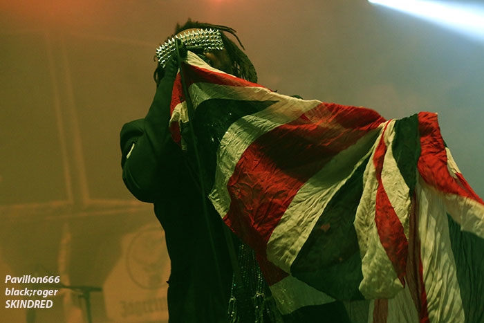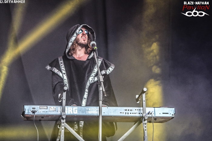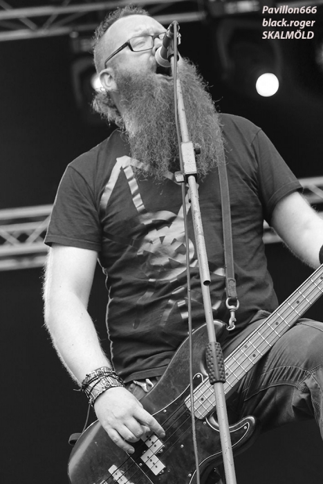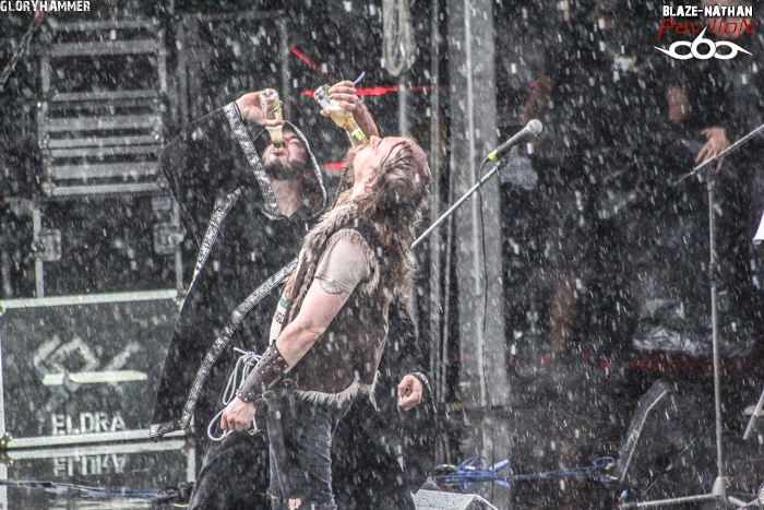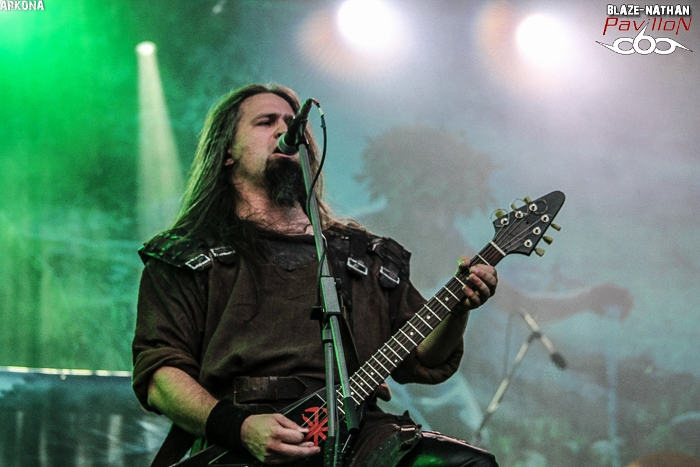 Dès 15heures 40 GORYHAMMER se présente sur la mainstage avec l’orage qui arrive à vitesse grand v. Chris Bower (Alestorm) et ses sbires nous offrent un certain heavy/power metal inspiré par du space-metal du moins dans les tenues complètement spéciales et bigarrées. Mélodies mises en avant, chahut scénique symphonique, le groupe attire notre curiosité c’est un fait, mais au bout d’un moment on tourne un peu en rond dans leur délire à l’italienne. Tout se passerait bien dans le meilleur des mondes si l’orage ne prenait pas de l’ampleur et déversai une tonne de pluie en bourrasque sur la scène. Résultat des courses, un show réduit de moitié, des musiciens réfugiés en fond d’écran et des balayeurs essayant d’assécher le plancher, dommage ! Groupe à revoir dans de meilleures conditions afin de critiquer favorablement (ou pas) leur show. L’orage calmé, vers 16heures 30, je me rends à la seconde scène pour voir et apprécier (ou pas) les prog/métalleux germains de CRYPTEX. Le combo de Hannovre arrive devant nous avec sous son bras un second album intitulé « madeleine effect ». Après presque une année sans « live » le groupe semble bien remonté, alors écoutons. Le metal/prog des Allemands possède un côté « vintage » qui surprend au premier abord, mais qui ensuite fait mouche de par la dextérité des musiciens qui nous font voyager dans les 60’s et 70’s, excellent et bienvenu dans notre époque. Retour à la mainstage à 16 heures 30 pour le set de SKALMÖLD. Au menu du folk/metal en provenance d’Islande, on voyage, on voyage ! Le groupe vient de sortir son 4ème opus intitulé « Vögguvisur Yggdrasils » et compte bien nous en faire profiter en live je suppose. Skalmöld, formation déjà bien connue dans le monde du metal Viking mène bien son drakkar depuis l’an 2009 et nous apprécions toujours ses dérives guerrières, ses envolées fougueuses et brutes de décoffrage. Ceux de Reykjavik n’y vont pas de main morte même si parfois le tempo se ralentit mais gagne en lourdeur. Bref, on aime tout simplement et leur show mouvementé a su séduire un public prêt à l’abordage. La suite sur cette grande scène sera plus mortelle avec la venue des « ricains » de CATTLE DECAPITATION. Les Californiens de San-Diego, déjà vus récemment lors du Hellfest, ne vont pas nous faire de cadeau question brutalité et engagement dans notre humanité décadente qu’ils dénoncent. « The anthropocene extinction », dernier album en date se révélant être le meilleur de leur « déjà » imposante discographie, leur prestation actuelle vaut donc nettement le détour. Riffs de tueurs, blasts à gogo, « grunts » infernaux, nous n’en sortirons pas indemnes. Excellent tout simplement. Et hop, direction la seconde scène pour un groupe possèdant un nom « à coucher dehors », groupe que je ne connais pas, mais cela ne saurait tarder. Ce sont les Slovènes de PENITENZIAGITE oeuvrant dans une veine orientée death/black et qui nous ont offert en 2015 un premier « méfait » intitulé « Humanity Galore » faisant suite à deux démos. La découverte fut bonne pour ma part, leur death technique et moderne mâtiné de black se révèle vicieux et original, un death qui nous accroche immédiatement. Ces Slovènes tirent leur épingle du jeu dans la mouvance actuelle du metal-de-la-mort-qui-tue et c’est tant mieux. Groupe à suivre évidement, découverte très intéressante donc. INSOMNIUM arrive à 19 heures 10 sur la mainstage où le public piaffe déjà d’impatience c’est certain. Oui, c’est indubitable le death-mélodique des Finlandais plait et le groupe continuer à surfer sur la vague de la célèbre école Suédoise dite de Göteborg. En 16 années d’existence et 7 albums au compteur, ces musiciens des pays nordiques ont su séduire un large public. Mais, car il y a un mais, leurs compositions se ressemblent un peu trop les unes par rapport aux autres et malgré quelques sursauts un tantinet agressifs le côté mélodique et atmosphérique avec introduction de voix claires reste un peu mou en ce qui me concerne. Leur death-mélodique reste simple et accessible à beaucoup de monde voilà la clé de leur succès, à quand un album uniquement composé de ballades ? Dès 20 heures 35 les Russes d’ARKONA emmenés par la dynamique et charismatique Masha vont donner une prestation forte, puissante et émotionelle, une prestation d’anthologie pourquoi pas ? Ayant eu l’occasion de voir souvent en live ces folk/métalleux notamment dans leurs débuts, j’ai assisté à l’évolution du folk/métal pratiqué par ces moscovites depuis le pagan épique jusqu’aux titres plus métal, plus réalistes gravés sur leur dernier opus « Yav » de 2014. Alors oui, nous pouvons dire qu’Arkona évolue bien et sa musique aussi avec une frontwoman capable de vous séduire dans tous les sens du terme, depuis les chants clairs remarquables et remarqués jusqu’aux « growls » intelligemment placés, on aime, que dis-je on adore ! Le death-metal reprend ses droits dès 21 heures sur la seconde scène avec la venue de l’un des groupes pionniers de la scène brutale US, INCANTATION. Depuis 26 ans ceux de Pennsylvanie, malgré de très nombreux changements de line-up, ont su conserver l’agressivité de leurs débuts ce qui leur avait donné le statut de groupe culte seulement après leurs deux premiers albums. Sur des ambiances noires et abyssales, avec des intros malsaines, le groupe qui lorgne parfois vers le doom sait battre le fer (le metal !) comme au premier jour. L’efficacité et un certain charisme sont au rendez-vous pour un set accrocheur et sans faute, excellent tout simplement. SKINDRED qui était passé l’an dernier ici-même en début d’après- midi sur la mainstage revient en vainqueur cet année à 22 heures sur scène devant un énorme public agité, un public qui a dù avoir connaissance des sets ambiancés 