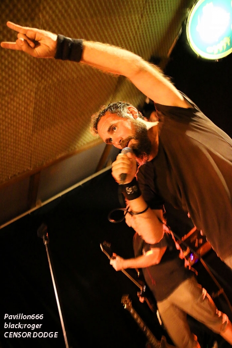 C’est donc B-POP, jeune formation grenobloise qui monte sur scène en premier. Le quintette se fait remarquer par la présence notamment de deux filles, l’une au chant, l’autre à la guitare, et bien entendu trois garçons (dans le vent) complètent la formation. Alors, que nous offrent ces jeunes isérois ? Et bien c’est plutôt du rock énervé avec un brin de « core » qui dérape dans un domaine pop, brutal-pop comme ils aiment à définir leur musique. C’est frais, c’est nouveau et ça vient de sortir avec quelques approximations au détour des titres, mais pour leur second concert ils se défendent très bien. Nous passons ensuite à du metal, du metal lourd avec CENSOR DODGE de la Tour-du-Pin qui débarque avec sous ses bras un premier EP 3titres paru en Mars 2016. Censor Dodge, à l’aide d’un chant burné et rocailleux nous offre un voyage entre heavy-metal, hard-rock et stoner. Les musiciens ne sont pas nés de la dernière pluie metal et nous font profiter d’un set remarqué avec des textes qui ne le sont pas moins. Bonne idée d’avoir mis à l’affiche de ce fest ce groupe aux envois bien rock au final et l’on a aimé. « Leave me Alone », le clip de HOLLOW GRAPHX nous avait interpellé et là ce soir devant nous voici donc en live ce quatuor stéphanois de metal alternatif emmené par la charismatique Astrid Gaspari à l’aise au chant dans le domaine choisi ici. Alors venons-en au faits, ce quatuor a beaucoup d’idées, ses compositions sont variées mélangeant un certain côté atmosphérique à des montées en puissance assez remarquables. Mais, car il y a un mais, tout cela devrait un peu évoluer à mon humble avis, manque un petit quelque chose pour que la chrysalide devienne papillon. Nous attendons donc la suite avec impatience car cette formation a tous les atouts en main pour réussir une percée dans ce monde metal/rock à chanteuse bien fourni actuellement. En tous cas ce soir l’accueil du public fut chaleureux pour ce groupe en devenir. A 20heures 15, les savoyards de NEVERCOLD débarquent sur les planches, branchent leurs instruments en envoient le son, et quel son ! Car Nevercold ne fait pas dans la dentelle avec un Kors aux vocaux arrachés qui conduit le groupe dans du gros rock’ n’core (sic) qui tâche. Coup de pied donc dans la fourmillère de la tanière où le public n’attendait que ça en fait pour se défouler. Ce quatuor n’est pas un nouveau- né dans la scène metal frenchie et après une période assez death-mélo à la C.O.B. (Children of Bodom), il marque avec son dernier album en date « Rebirth » un certain retour aux sources du rock gonflé aux amphétamines et bourré de testostérone, et là ce soir ça va faire mal, très mal avec un set incroyable qui nous a laissé sur les rotules. Allez, un peu de heavy-metaaal pour contenter tout le monde avec les talentueux SENTINHELL en provenance d’Avignon qui nous emmènent sur les traces de la NWOBHM des 80’s. Chanteur remarqué au look d’enfer, guitariste virtuose, duo basse-batterie au taquet, le groupe assure sans problème. Et le public suit, instaurant une ambiance incroyablement innatendue, preuve que Sentinhell a tout comprit au film du heavy-metal old-school. Il va donc nous offrir un show implacable de velocité et et de véracité, merci les gars vous revenez quand vous voulez ! Changement de style maintenant avec BUTTS OF BANGKOK groupe stéphanois naviguant dans les eaux boueuses du sludge-metal. Et là, cela ne va pas se calmer dans l’assistance, ce groupe va même jeter de l’huile sur le feu par ses envois venimeux. Résultat, un show très chaud, des tage-diving, de la sueur qui ruisselle sous les coups de boutoirs des titres du groupe, des compositions qui dérivent entre stoner et punk par moments.Leurs envois sont donc d’une éfficacité redoutable en live et personne n’en ressortira vivant à la fin de leur prestation. Si, car voici maintenant les vieux renards du désert souvent imités, jamais égalées, je veux parler bien sûr de ceux de GOD DAMN. Nous sommes donc le troisième jour de septembre 2016 et God damn est ressuscité , témoin ce premier concert donné après quelques années de « stand by ». Voici un show très attendu donc avec un nouveau batteur présenté par Rénat’. Alors, inutile de vous dire que ceux de God damn sont remontés comme des « coucous » et ont retrouvé leurs marques en live avec des clins d’oeils complices échangés entre les musiciens. Retrouvailles donc dans tous les sens du terme et un « épais » public où l’on voit des gens serrés comme des sardines jusqu’au bar du haut de la piste va entrer en « communion » avec le gang des Lyonnais. Charly, Pich, Jérémy, Renato et maintenant Julien vont nous « gaver » de bon stoner/metal/rock n’roll comme on l’aime, à point, juteux, chaleureux, et incroyablement charismatique. La tanière va donc entrer en ébullition durant tout le set de la bande à Renat’, et croyez-moi ce fut un moment intense, agité et épique que nous avons passé avec les « Damn », excellent tout simplement. Set-list en photos. N’ayons pas peur des mots, ce Metal Fest/Summer Rock fut une totale réussite à tous point de vue, choix des groupes, organisation au top niveau, accueil chaleureux et public en nombre et surtout « vivant ». Merci à Bloody Noise pour cette journée exceptionnelle, nous attendons avec impatience un nouveau fest qui devrait avoir lieu fin Janvier prochain au même endroit dixit Xavier, membre de l’association. A bientôt donc pour retrouver l’ambiance des soirée rock/metal à St-Etienne. |