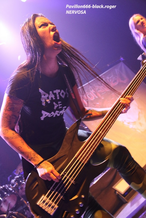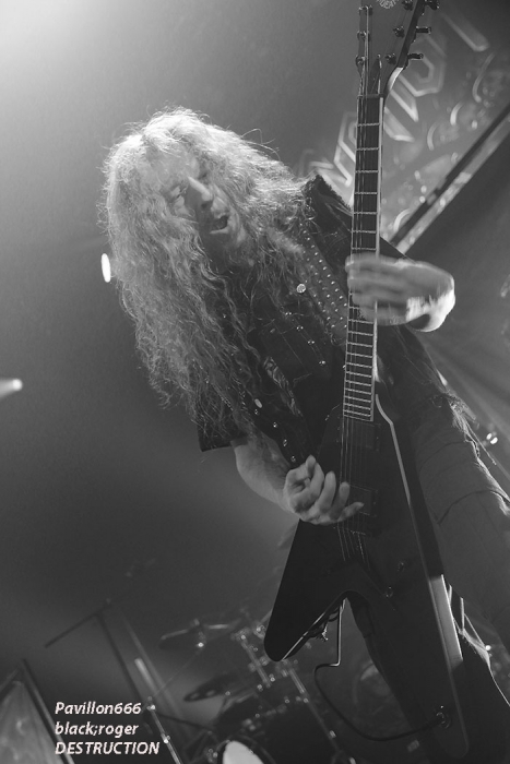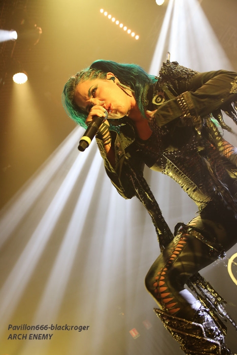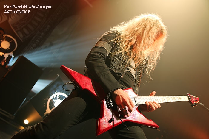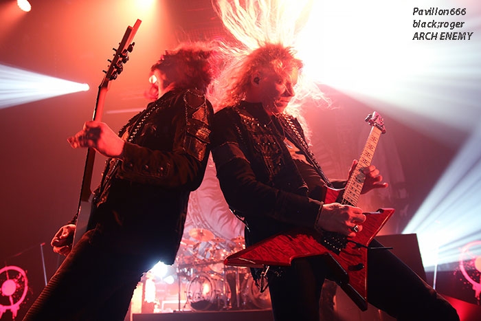 Le remplissage de la salle se fera progressivement à partir de l’ouverture des portes à 17 heures et des poussières avec à 17 heures 20 la première formation sur scène qui lance le débat avec force et vélocité. Cette soirée sera donc longue, mais bien consistante avec au menu et dans l’ordre de passage, AND THEY SHE CAME, NERVOSA, ENFORCER, FLOTSAM & JETSAM, DESTRUCTION et ARCH ENEMY en bouquet final. Alors chers amis vous allez déguster dans tous les sens du terme, « are you ready » ? A peine le temps d’entrer dans la salle que les rockers alternatifs de Cologne, Allemagne, emmenés par la fougueuse Ji-In Cho, qui ne tient pas en place, débarquent sur la scène de la Belle « metallique » de Grenoble. Ils ont la forme et l’envie d’en découdre afin de présenter leur premier opus éponyme de 2016.Leur « modern metal » est nerveux et fait suite à celui de Krypteria ancien groupe de ce quatuor qui avait déjà sorti quatre albums entre parenthèses. Mais leurs envois puissants se marient mal avec la voix de Ji-In Cho, voix trop claire dans le style il me semble. Au final nous bénéficierons d’un petit set de mise en bouche avec des musiciens aguerris, nous n’en demandions pas tant ! Et puis, et puis, le trio infernal Brésilien NERVOSA, composé de trois filles va remettre les pendules à l’heure avec du thrash incroyablement dynamique et puissant avec en ligne de front la chanteuse /bassiste Fernanda Lira et la guitariste Prika Amaral. Bien entendu les filles ont à défendre en live leur second « méfait » intitulé « Agony » aargh ! Le thrash-metal de NERVOSA est sans compromis, violent, agressif et énergique en diable Leur thrash n’invente rien dans ce style où tout a déjà été dit, mais le trio de Saö Paulo sait pimenter ses envois avec des mélodies malsaines et des intros apocalyptiques. Alors en live Nervosa ne nous fera pas de cadeau, nous collant contre les murs avec une efficacité redoutable. Ce soir leur prestation a laissé un public exsangue, c’est vous dire ! Du thrash burné, nous allons passer maintenant au heavy speed des Suédois d’ENFORCER ayant déjà enregistré 4 albums en 12 ans d’existence, pas des nouveaux venus en somme. Ces Suédois ont tout comprit au film du heavy-metaaal avec en prime ses tenues bien « glamouzes » cheveux au vent. Olof, chanteur/guitariste se met bien en avant pour nous délivrer des soli ébouriffants en montant sa voix dans le paradis des aigus et en nous emmenant parfois dans des voies plus thrashisantes mais à petites doses voyons. Rien d’original donc dans leurs compositions mais une prestation faisant revivre pour certains l’époque épique des 80’s et pour les plus jeunes la découvrir en live puisque n’étant pas encore nés il y a presque 40 ans. Show plutôt amusant donc qui en a fait sourire plus d’un à la vue de cette « calvalcade » bien speed-metal. Et oui je l’avoue humblement je n’avais encore jamais eu l’occasion de voir sur scène l’un des vétérans du thrash Américain JETSAM & FLOTSAM et donc ce soir ce fut pour moi l’occasion de prendre une énorme claque tout simplement. Formé en 1982 ce groupe venant de l’Arizona a marqué son époque et finalement est revenu sur le devant de la scène en nous offrant encore un nouvel opus éponyme en cette année 2016. Pour mémoire, cette formation a compté dans ses rangs un certain Jason Newsted (ex-Metallica). Riche idée donc de nous offrir en live ces musiciens qui ont la particularité de déambuler dans les couloirs du thrash bien sûr, mais un thrash recherché nous proposant de longues compositions aux déviances prog où la technicité n’empiète pas sur l’efficacité avec notamment des clins d’œil au power metal par moments. Résultat des courses, ceux de Phoenix nous ont offert un set de toute beauté, tout en émotions et en puissance sous-jacente. Au niveau de la set-list (en photo), 9 titres avec de l’ancien comme « Hammerhead » et « Desecrator » et du nouveau bien sûr avec « Seventh Seal », « Monkey Wrench » et « Life Is a Mess ». Set-list bien étudiée donc pour une prestation incroyable de maîtrise de professionnalisme et surtout, comme je l’ai dit plus haut, d’émotion, avons adoré tout simplement. Et puis, et puis, le thrash teuton avec toute sa puissance à l’état brut va nous être balancé en pleine face avec le trio infernal Allemand DESTRUCTION. Un Destruction qui ne va pas faire de cadeau ce soir avec notamment des titres de son nouvel album, le 14ème, intitulé « Under Attack » je ne vous fait pas un dessin. Ces légendes du thrash que sont Marcel Schirmer et Mike Sifringer vont nous offrir un set sans surprise dirons- nous car Deathtruction fait toujours du Destruction avec des hauts et des bas dans sa discographie. Mais en live, tous les « potets » sont dans le rouge et la machine de guerre ne nous laisse aucun répit, c’est toujours violent, direct, brut de décoffrage et même après 30 ans on aime toujours ça. Le décorum metal et les lights agressifs contribuent à donner une dimension supplémentaire à leurs envois, la présence de ces pionniers est toujours remarquable, alors ne crachons pas dans la soupe du thrash car ce soir le trio démoniaque d’outre-rhin a tout donné. Après le char d’assaut Destruction, nous allons changer quelque peu de style et d’ambiance avec le venue sur scène d’ARCH ENEMY . D’ailleurs depuis un moment déjà les fans ultimes piaffent d’impatience accrochés aux « crash-barrières ». Et comme pour le groupe précédent les membres de la sécurité veillent au grain car ça va voler de partout dans le pit, c’est certain. Et puis on ne vous fera pas un dessin avec l’arrivée tonitruante sur les planches de la belle Alissa White-Gluz qui depuis maintenant deux ans assure le chant dans le groupe tout en nous offrant une chorégraphie éblouissante, quelle présence ! Mais n’oublions pa
