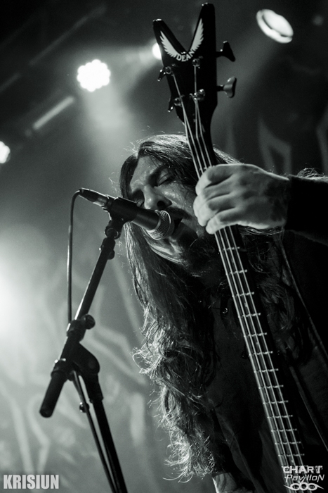 KRISIUN ouvre les hostilités aux alentours de 20h. Ces trois frères brésiliens œuvrent dans un death metal technique des plus appréciables. Le niveau technique est au rendez-vous. Le groupe sévissant sous forme de trio, il se doit d'être propre et parfaitement à l'aise. C'est bien entendu le cas car la musique de KRISIUN est clairement de qualité. La brutalité est là aussi car c'est un ingrédient majeur de ce style. Mais, on retrouve tout de même certaines influences que l'on retrouve chez pas mal de groupes venus de ce pays. Il y a ces racines thrash qui rendent les groupes brésiliens un peu particulier, uniques en leur genre. Cela rend un ensemble chez KRISIUN plutôt nuancé où les riffs viennent s'emboîter les uns avec les autres avec pas mal de changements de tempo et parfois d'ambiance. Cela n'enlève rien à la puissance majestueuse de ce groupe qui apporte au death metal un souffle nouveau. L'énergie est telle que malgré le fait que l'on soit dimanche, on se laisse très vite emporter par ce flot de notes. KRISIUN est incontestablement un très grand groupe dans son genre et il aurait été dommage de s'en priver. Comme il aurait dommage de se priver de l'hommage rendu à Lemmy avec une très bonne reprise de « Ace of Spades ». La tournée « Shadows Over Europe » se conclue ce soir à Lyon et DARK FUNERAL semble déterminé à la conclure d'une manière efficace. On découvre une scène chargée de croix inversées et de pentagrammes. Afin de compléter l'ambiance, des bougies sont allumées sous les croix. DARK FUNERAL a travaillé son show, mais aussi ses costumes et son maquillage pour cette tournée afin de vous faire pénétrer au mieux dans l'ambiance de sa musique. Le groupe officie depuis pas mal d'années, 23 pour être exact et a connu pas mal de changements de line up. Des débuts il nous reste les deux guitaristes Chaq Mol et Lord Ahriman. Le chanteur Emperor Magus Caligula ayant quitté le groupe en 2014, il est désormais remplacé par Heljarmad qui lui succède plutôt bien. A la différence d'un KRISIUN, DARK FUNERAL ne fait pas le nuancé. Sa musique est clairement orientée vers le black metal extrême, rapide et bien produit. Le groupe a choisi de sortir des enregistrements caverneux pour aller enregistrer du côté de chez Peter TÄGTGRËN qui les suit depuis longtemps. Le résultat de cette production est forcément orienté vers quelque chose de clair, puissant et efficace. En concert, le groupe vous livre un flot extrême de black metal qui rapidement vous plonge dans une ambiance particulière. On couvre toutes les périodes du groupe par un choix de titre large. Le show est plutôt intéressant même si pour ma part le flot ininterrompu qui au bout d'un moment manque de nuances. Disons que sur la durée ce groupe manque un peu de rebondissements et c'est que j'ai toujours eu tendance à leur reprocher. Mais DARK FUNERAL a le mérite de garder son cap depuis ses débuts et ne se compromet pas. C'est un avantage qu'a cette formation, là où d'autres sont aller faire des tests à droite et à gauche pour finalement ne jamais vraiment en revenir, en se perdant tout simplement. Une bonne soirée extrême pour terminer le week-end avant d'autres aventures. DARK FUNERAL en tête d'affiche c'est un peu un pari risqué pour les organisations. On remercie donc MEDIATONE pour cette prise de risque mais surtout pour son accueil et son organisation. Pour des raisons de confidentialité YouTube a besoin de votre autorisation pour charger. Pour plus de détails, veuillez consulter nos Politique de confidentialité. Pour des raisons de confidentialité YouTube a besoin de votre autorisation pour charger. Pour plus de détails, veuillez consulter nos Politique de confidentialité. |
