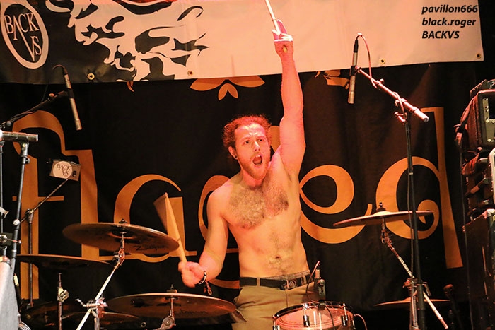 Voici donc BACKVS qui monte sur scène dès 20heures trente et nous détruit ce qu’il nous reste de neurones dès les premiers titres avec un rock customisé metal aux relents nauséabonds de stoner. Déjà vu en live il n’y a pas longtemps, j’étais quasiment certain que le quatuor Lyonnais allait faire parler la poudre. Mission accomplie devant un public déjà en nombre remplissant le kafé, ce grand Kafé du Ninkasi de Lyon.