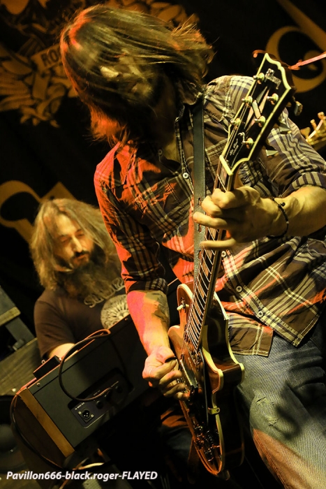 Et puis, et puis, la bande à Renat’, FLAYED a débarqué avec ses musiciens remontés comme des coucous et ils ont fini par incendier le Ninkasi à l’aide de leur rock-hard aux dérapages metal et aux ambiances seventies parfois. Bien évidemment le public s’est lancé immédiatement dans des agitations physiques de tous genres, slams y compris.