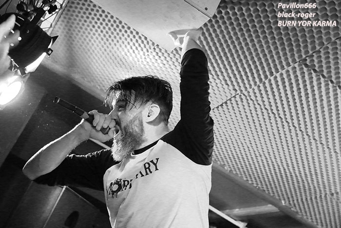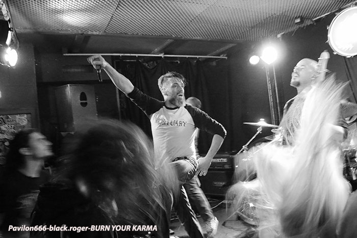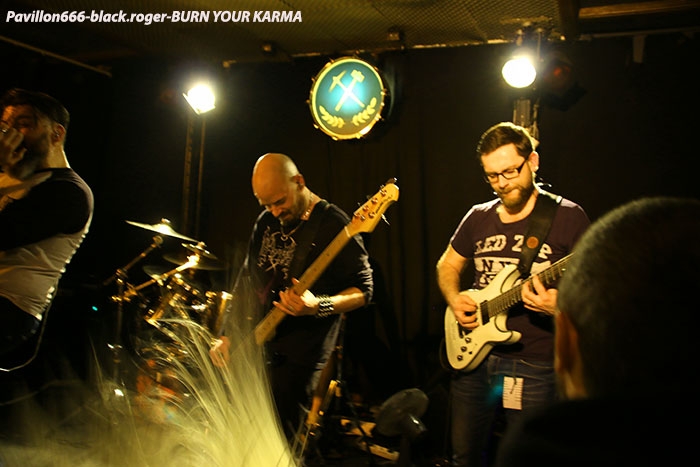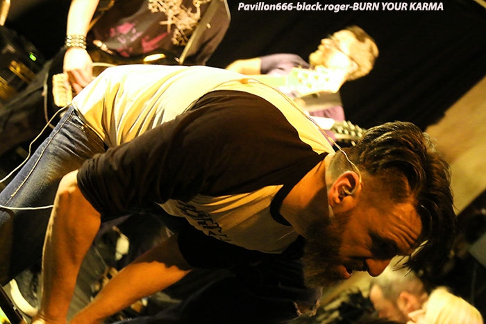 Après la tornade Sharked, voici l’ouragan BURN YOUR KARMA qui va faire un malheur avec un metal qui arrache, qui groove et qui détruit ce qu’il vous reste de neurones. Frontman qui s’envoie en l’air, musiciens arc-boutés sur leurs instruments, ça vous débouche les conduits auditifs de façon claire, nette et précise, sans bavure aucune, du boulot d’orfèvre sans la sphère métallique Et puis, scéniquement parlant le groupe rentre au contact du public, l’excite, lui rentre dedans. Alors je ne vous fais pas un dessin, les Stéphanois, jouant « at home » nous ont collé contre les murs, quel punch !