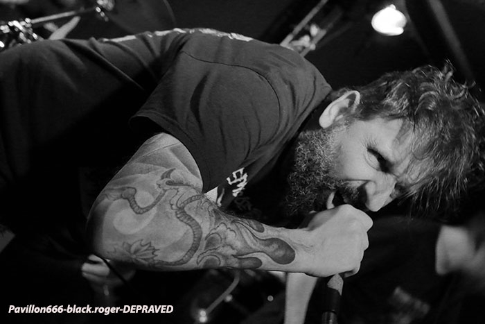 DEPRAVED tout d‘abord qui n’est pas un nouveau venu dans le style du metal-de-la-mort qui tue… Et ceux de Nancy vont nous donner ce soir le plus pervers d’eux-même, le plus brutal, le plus malsain. C’est carré, net et sans faux plis. Amateurs de rriffs destructeurs, de « growls » meurtrier, la musique de Depraved est faite pour vous et ce soir visiblement vous avez apprécié il me semble leurs effluves qui depuis 20 année d’existence ont décidé de nous démolir le corps et l’esprit avec bien sûr les excès du grind en filigrane se rapprochant de ce que font Napalm Death ou encore Terrorizer.