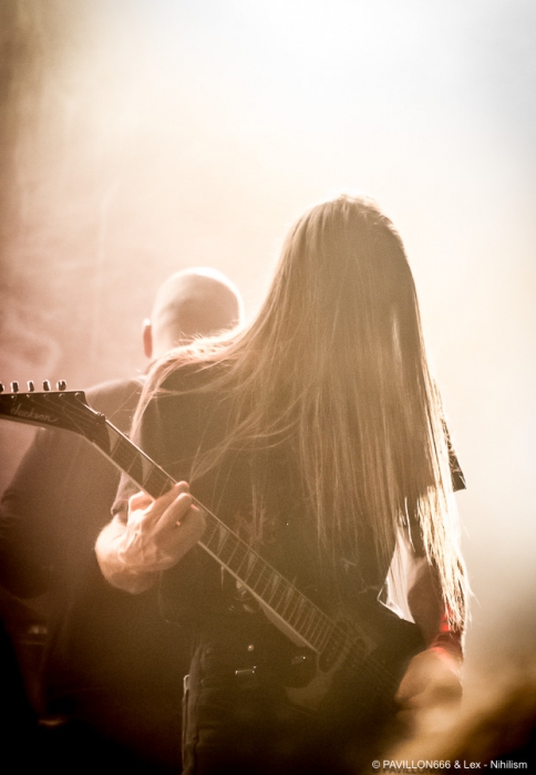 Nightland. Le groupe italien n’était pas programmé initialement, mais s’est parfaitement intégré à cette affiche de par leur death symphonique. Bien qu’un peu déçu par le désistement involontaire de Fleshgod Apocalypse, bon nombre de personnes dans le public ont été agréablement surpris par ce groupe assez jeune, mais visiblement prometteur. Les titres s’enchainent dans un registre puissant et parfaitement maitrisé. Ce fut pour moi encore une agréable découverte et je vous invite vivement à écouter leur album « Obsession » paru en 2015 si ce n’est pas encore fait.