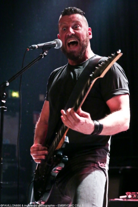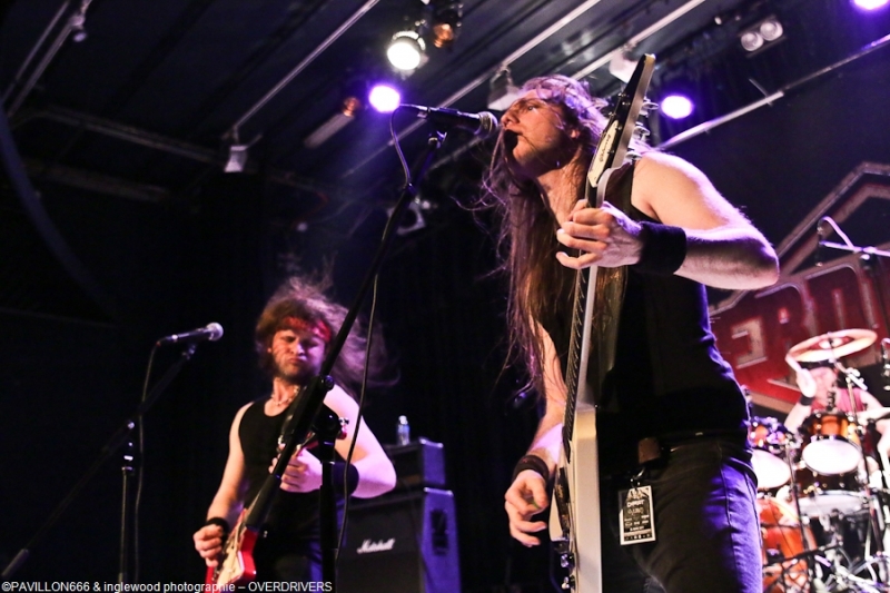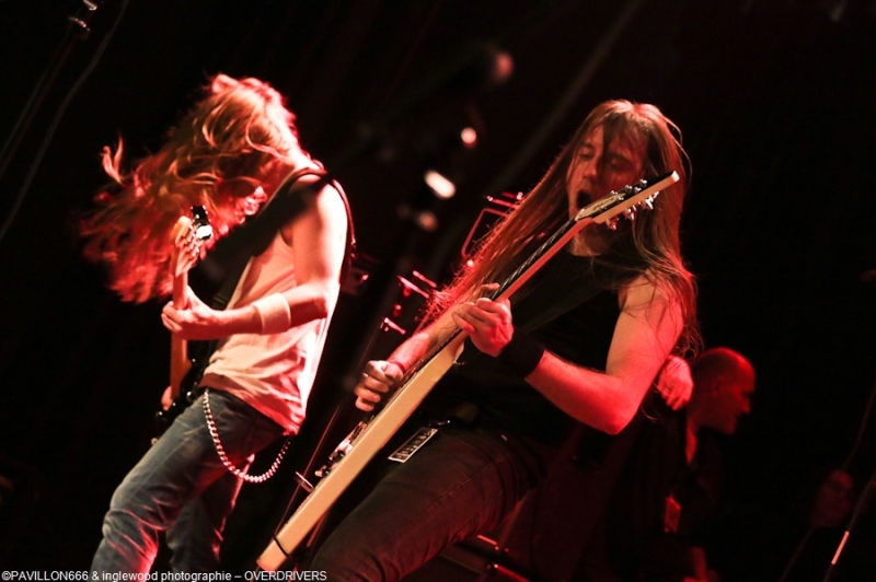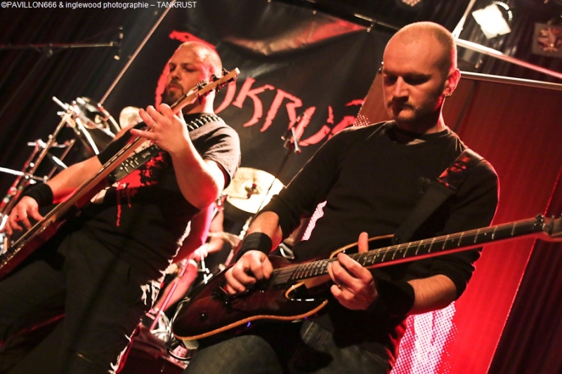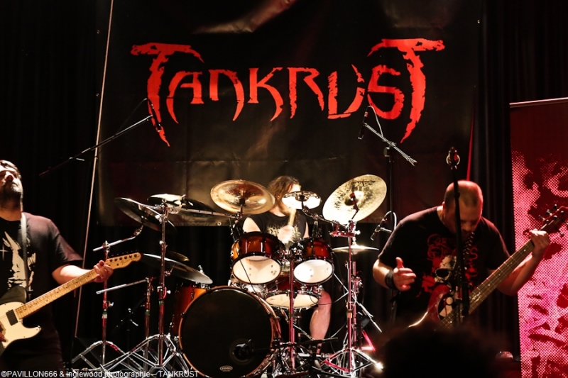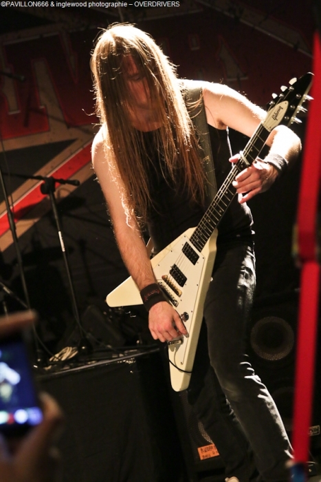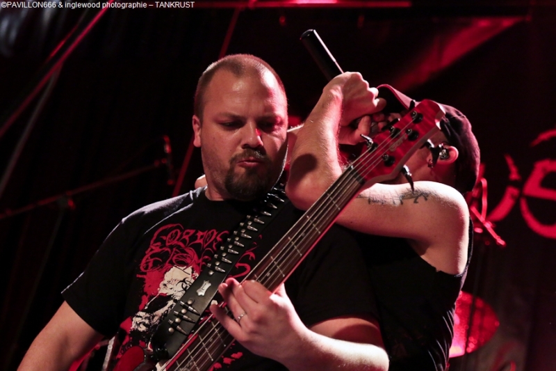 Dans une salle à dimension humaine mais respectable (250 furieux) : Le Contrepoint, avec une sono puissante et des lights plutôt fournis, le Fest était bien logé. Preuve, s’il en fallait une, qu’il n’y a pas qu’à Paris qu’il se passe des choses, le plateau était de choix. Aussi bien en matière de qualité que de quantité, pas moins de 8 groupes pour 16€, de la musique de 15h à minuit ! Comme souvent dans ce genre de festivals, l’organisation, composée de bénévoles motivés et disponibles (pas mal de copains des Lezardos) fut irréprochable. Une ambiance au top avec zéro raté organisationnel ou technique, de vrais pros à LA Events. Alors, dans le détail ? Malheureusement, je suis arrivé alors que mes copains de UNDEAD remballaient, donc je ne vous dirait rien de leur prestation du jour mais les connaissant bien et de l’avis des présents, leur thrash fut efficace et violent à souhait. C’est peut-être pour ça que les Anglais de SPOILER ont eu un peu de mal à jouer après. Pas assez de présence scénique et un chanteur un peu statique, le tout sur des compos un peu téléphonées mais plaisantes, voici le bilan de ¾ h d’un set qui n’a pas vraiment décollé. Ah !!, TANKRUST. Découverts, pour ma part lors du festival des LEZARDOS en 2016 et beaucoup aimés, ce groupe est énorme de présence et d'aisance scénique. Des compos death-hardcore brutales (peu être trop pour un public un peu timide) mais qui ont bien fait mal à mes oreilles. Les gars n'ont pas compté leurs efforts, Kootoh au chant saute partout, utilise le mégaphone et vient chercher le public en permanence tout comme les autres musiciens qui ont assuré un set efficace et maîtrise. S’il y en a qui ont su réveiller le LA Events Fest c’est bien les nordistes de OVERDRIVERS ! Gibson dans Marshall, le gain à fond et vogue la galère. On ne se pose pas de question chez OVERDRIVERS , c’est du rock burné, des cheveux qui virevoltent et une énergie tourbillonnante qui a tout emporté sur son passage. Des titres qu’auraient pu interpréter AC/DC ou AIRBOURNE, des gars excellents et un public qui dansent et qui se laisse draguer par ces mauvais garçons. Du bon boulot ! Ce n'est pas possible, pour moi, d’être complètement impartial avec les copains d'EMBRYONIC CELLS. Groupe emblématique de la scène Black metal Troyenne (ou seul groupe de la scène black metal troyenne) depuis presque 20 ans, ce sont des saigneurs. Maîtrise totale du sujet, les garçons n'ont rien à prouver mais bouffent la scène comme des ados turbulents. Max au chant est puissant et très charismatique et Pierre le Pape (notre fierté à nous Troyens) fait preuve de sa maestria habituelle. Focus sur Mamouth (!?) à la basse qui assurait son premier set avec EMBRYONIC CELLS. Un concert dense, noir et violemment parfait. On ne va pas se mentir, j'ai une affection particulière pour le metal Japonais, sa folie, son extravagance, ses qualités techniques et sa dichotomie. Surtout quand il s'agit ,comme ici, d'un girls band. Le contraste entre des minettes sapées comme des lolitas mais qui viennent pour nous coller des mandales. GALMET est donc un groupe Japonais de death mélodique aux compos assez classiques et pertinentes qui défouraille comme il faut. Le spectacle est une part intégrante du set, les filles nous font toutes les poses, headbangent comme des dingues, c'est indéniablement contagieux. Le public ne s'y est pas trompé et est , pour la première et seule fois, massé devant la scène. Comme toujours, les fans le savent, les instruments sont plus que maîtrisés (focus sur les 2 guitaristes) et le set file super vite, on en aurait peu être voulu plus. GALMET a assuré, c'est clair, les filles bénéficient d'un évident capital curiosité mais ça le fait, personne n'y trouvera rien à redire. Je n'ai pas mis longtemps à comprendre que le groupe qui suivit avait une fan base dévouée et très présente. Des petits gars avec des t-shirts du groupe qui ont chanté presque plus fort que le chanteur, des mamies, des familles, mais vous êtes qui SHOEILAGER ? Et bien un excellent groupe Chalonnais qui pratique un heavy metal en français bien brut de décoffrage. Présent sur les routes depuis plus de 15 ans et avec 4 albums à leur actif, ce ne sont plus des débutants. Les compositions sont efficaces, assez classiques, mais avec souvent un riff et des refrains bien identifiables. Autre point super-positif, l'attitude. La banane, les sourires ainsi que les petites interventions entre las morceaux ont donné un côté proche et amical au set . J'ai beaucoup aimé et nul doute que je reviendrai voir SHOEILAGER. Tête d'affiche de se premier LA Events Fest un groupe de la NWOBHM tout droit sortie des 80's. CHARIOT aligne plus de 30 ans d'expérience, autant dire que je ne ferais pas l’affront de dire que les Anglais maîtrisent leur sujet. Un concert bien old-school mais super plaisant, en grande partie grâce à l'humour dont ont fait preuve les musiciens et surtout le chanteur, Pete Franklin qui blague entre chaque morceaux. Une heure trente dense et parfaite. Parfaitement rétro aussi, c'est la mode semble-t-il ! Tant mieux car voir ces Anglais maîtriser leurs instruments et nous claquer des rythmiques bétons armés avec ces sourires et une parfaite exécution c'est rare. Et bien, cette première édition du LA Events Fest fut vraiment dense et superbement organisée par de vrais professionnels. On a hâte de revenir ! Remerciements à toute l'équipe du LA Events, en pariculier à Ludo, aux Lezardos et à Elodie, la nounou des petites japonaises. |
