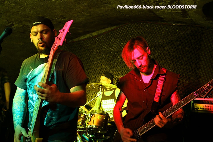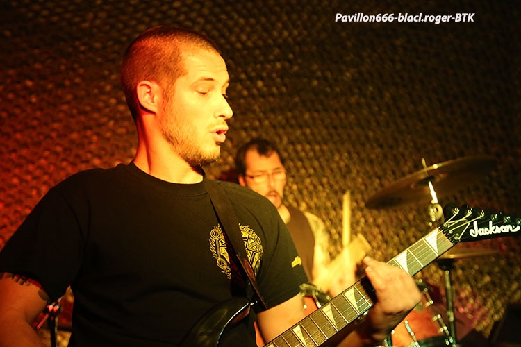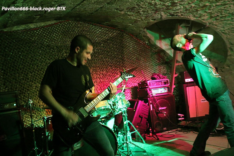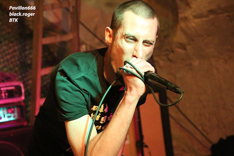 BTK (Bind Torture Kill), c’est un autre trio ce soir qui lance le son maintenant mais dans un tout autre genre. Voici donc une formation du Nord-Isère qui ne fait pas dans la dentelle avec son death, son hardcore (post ?) saupoudré de noise et de grind. Un guitariste, un batteur et un hurleur enragé voilà le tableau. Tableau mouvementé s’il en est qui a tôt fait de mettre en mouvement le public caviste.