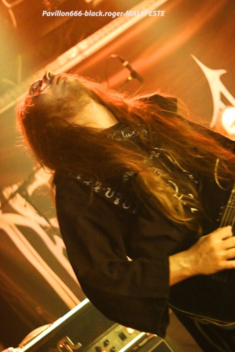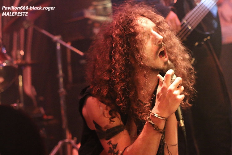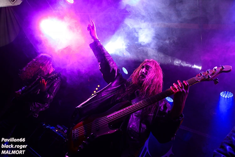 Les bougies s’allument, les lumières s’éteignent et le rituel de MALEPESTE peut commencer. Voix d’outre-tombe, choeurs de crypte, robes de bure, sons de cloche, tambourin, tout est bien orchestré afin de nous introduire dans le monde occulte de Malepeste. Et puis les instruments électrifiés prennent le dessus, guitares, basse, batterie qui soutiennent les vocalises d’un chanteur possédé dans des allures théâtrales bien étudiées. Car oui, Malepeste que je n’avais pas vu en live depuis des candélabres a bien évolué, leur set se veut, bien consistant et prenant dorénavant et la chorégraphie scénique ne supporte aucune approximation. Autant le dire tout de suite Malepeste a sûrement encore marqué des points ce soir et subjugué un public largement acquit à sa cause je n’en dirai pas plus ! C’est maintenant au tour de MALMORT de venir nous impressionner à l’aide de son black-metal old-school aux déviances moyenâgeuses. Force et puissance sont programmés afin de nous entraîner dans leur danse macabre. Malmort fait son œuvre maléfique et le public le suit au rythme des guitares lame de rasoir aux distorsions éprouvées sur un rythme d’enfer. Leurs compositions savent nous interpeller tout en étant très imagées, l’émotivité glauque est bien au rendez-vous avec des envois flirtant avec le thrash par moment, Venom es-tu là ? Malmort n’a maintenant plus rien à prouver, les Savoyards peuvent s’enorgueillir de figurer parmi les formations les plus prometteuses dans le paysage black-metal de chez-nous. Décidément cette soirée prend le chemin d’un coup de cœur avec déjà deux formations ayant donné chacune dans leur style des prestations excellentes. Set-list en photo Je n’avais pas encore eu l’occasion de voir les Angevins de ENDE en live, et ce soir je vais donc pouvoir apprécier (ou pas) leur démonstration scénique. Ce groupe n’est pas un nouveau venu dans la scène black frenchie avec notamment trois albums à son actif dont le dernier de cette année 2017 intitulé « emën etan » est à défendre sur scène. Ende nous provoque sans cesse à l’aide d’un black-metal cru et sauvage allant jusqu’à enchaîner ses titres sans prendre le temps de respirer pourrait-on dire. Le rythme est alors soutenu, la rapidité d’exécution aussi. Le groupe nous fait partager une certaine haine, sombre, voire noire, vindicative aussi avec un frontman en permanence sur la brèche et qui vient vous happer l’esprit, le voler tout simplement. Musicalement on retrouve beaucoup d’agressivité mais avec de temps à autre une lueur mélodique venant déchirer le plafond sombre de votre matière grise. Bref, sous un aspect « rentre dedans » se cache une allure « jusqu’au boutiste » mais bien étudiée dans des envois destructeurs. Ende a donc donné la troisième excellente prestation de la soirée, affaire à suivre ! Set-list en photo MONARQUE aura quelques ennuis de basse pour démarrer sa prestation et l’impatience est palpable dans un Brin de Zinc attentif et pressé de découvrir (ou redécouvrir) nos cousins Canadiens. Déjà vu il y a peu sur une grande scène au Hellfest, j’étais curieux de voir évoluer ces maitres du Black Québecois sur une petite scène devant un public surchauffé par la proximité des musiciens. Voici donc une autre date de leur tournée actuelle « jusqu’à la mort », une date attendue de pied ferme par un public venu de loin parfois. L’incident clos, tout peut prendre forme sur scène avec la présence incroyablement mortelle de ces prédicateurs de la haine dans des ambiances oh combien malsaines où règnent cynisme et dérision, occulte quoi dans tous les sens du terme. Monarque dans ses dérives théâtrales conserve toujours une part d’émotion qui vous glace le sang inévitablement. Les envois sont carrément soutenus avec ce côté glauque sous-jacent pour une jouissance morbide, et infernale qui ne prendra fin qu’au bout d’une heure de show. Et l’on reste comme hébétés par ce concert intemporel, merci Monarque pour avoir transcendé cette Sabaudia Nocte, une nuit noire comme de l’encre dans notre Savoie immortelle. Set-list Merci aux organisateurs de cette soirée pas comme les autres, merci aux quatre hordes fidèles à l’esprit black-metal et merci au brin de Zinc pour son accueil toujours très apprécié. |