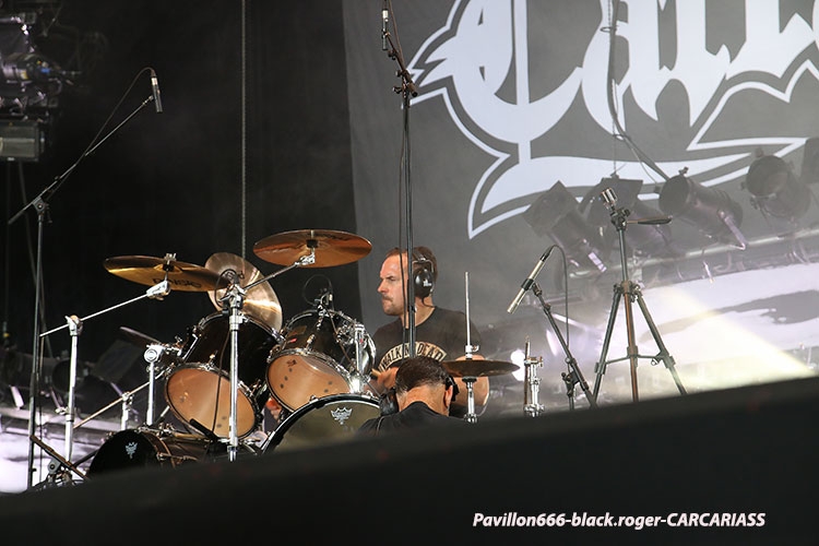 CARCARIASS, rescapé de la scène death-metal frenchie des 90’s se présente à nous ce Samedi 17 Juin sur la scène Altar. Curieux de revoir ces Franc-Comtois qui étaient restés plus de 7 années en « stand by » après un bon départ. Et nous constatons que leur death assez technique et avant-gardiste n’a rien perdu de sa superbe. Alors on apprécie leur démonstration qui se caractérise par des compositions un peu hors du temps, hors du death conventionnel.