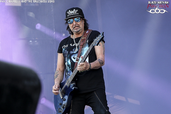 Une heure plus tard, sur la même scène, ce sont PHIL CAMPBELL & THE BASTARDS SONS qui nous envoient leur hard-rock. Phil et ses trois fils + Neil Starr au chant, c’est une fine équipe british pour du rock, du hard-blues, et ça marche ! Bien sûr papa Campbell (ex-Motörhead) n’est plus à présenter dans ses œuvres à la guitare et à la composition. Il a su s’entourer de sa famille pour ce projet labellisé rock n’roll. Le résultat est très bon en live, on apprécie fortement je vous le dis et personne je pense ne me contredira.
