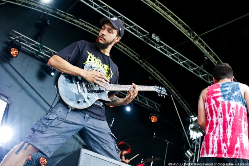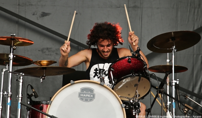 Asraon, jeune groupe de Sens m'a surpris de par sa justesse d'écriture et l'énergie de ses deux chanteurs qui ont performé comme si la fin du monde était proche. Entre le thrash et le Hardcore, la musique d'Asraon est réellement communicative et ça s'est vu dans le pit.