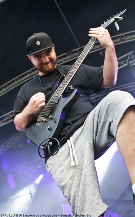 On passe un level avec Beneath A Godless Sky une formation Parisienne de Djent. Bah, bravo les gars, quasiment tout est parfait, les compos sont superbement abouties, j'y ai entendu du Periphery ou Textures, la mise en place est impeccable et le chanteur est hyper charismatique. C'est du miel pour les oreilles votre truc, bravo.