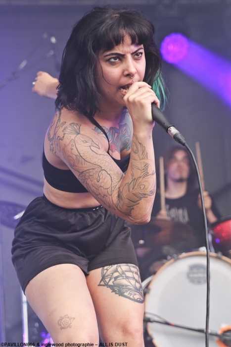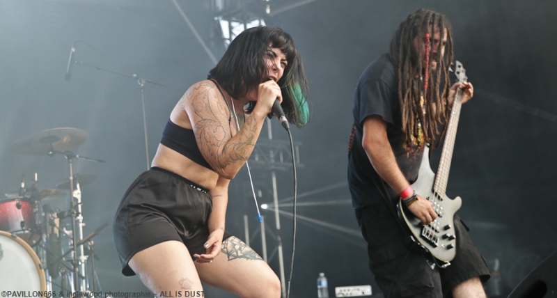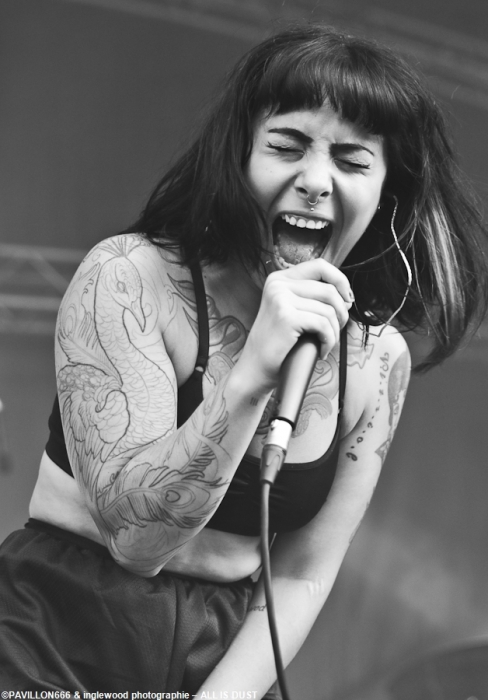La petite est ultrafan de ETHS (comme moi!) et ça se sent, elle est certainement aussi fan de Jinjer et sa chanteuse Tatiana (moi aussi, carrément!) et ça se voit, le look est dément. Je ne recule jamais devant une demoiselle en guerre et il vous faudra des arguments pour contrer la puissance de All is Dust les mecs, c'est violemment athlétique, bien écrit et si tu ne t'es pas échauffé avant le concert, tu le regretteras. Nul doute que vos efforts vont payer !!