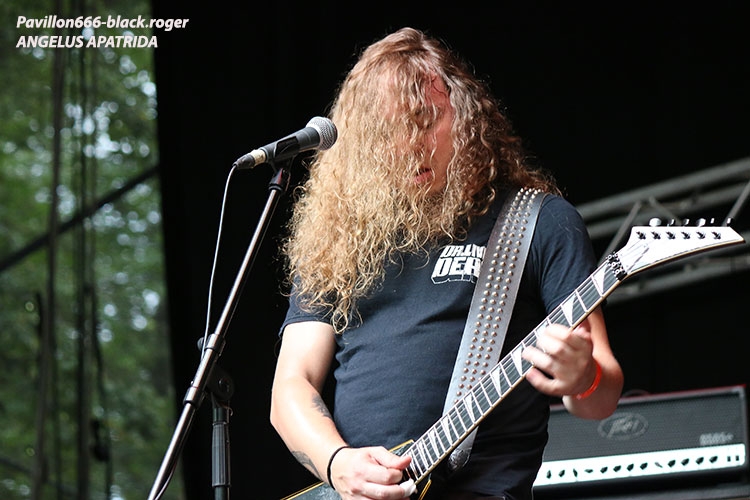 CHONTARAZ – seconde scène Nous passons le début d’après-midi en compagnie de CHONTARAZ sur la seconde scène. Ce groupe Norvégien va donner un set excellent dans une veine « post-apocalyptic heavy-metal », c’est eux qui définissent ainsi leur musique. Peu de monde encore devant la scène et c’est bien dommage car cette formation qui vient de sortir un premier album intitulé « rondamauh » sort un peu (beaucoup) des sentiers battus. En effet leur heavy-dark moderne semble être l’enfant bâtard issu d’une, copulation improbable entre black symphonique, power/epic metal et metal indus. En tous cas ce fus, une belle découverte que je vous engage à découvrir à votre tour si vous en avez l’occasion. IMMORGON – scène 3 Petite incursion maintenant vers la newforces stage au milieu des bois. Il est 16 heures à l’horloge du Metaldays et IMMORGON monte sur les planches. Ces musiciens Catalans revêtus de cottes de maille ont choisi la voie viking death-metal, une voie bien chargée actuellement avec notamment Amon Amarth, Heidevolk, Svartsot et autre Wintersun. Mais pour l’instant pas grand-chose les démarquent de leurs aînés, enfin d’après ce que j’ai pu voir et entendre ce jour. A revoir dans de meilleurs conditions comme l’on dit dans ces cas- là ! ANGELUS APATRIDA – seconde scène Les thrashers fous Espagnols d’ANGELUS APATRIDA vont nous donner une bonne leçon de metal en live sur la seconde scène ce jeudi. Avec sous leur bras déjà 5 albums et des tournées incessantes, ils sont arrivés à se faire connaitre à la force du poignet pourrais-t-on dire. Mention très bien donc pour ce groupe car aujourd’hui, il a su déchainer le public du festival, c’est sans appel ! NEMOST – mainstage Place maintenant au death/prog avec les Parisiens de NEMOST sur la grande scène SVP. Alors, ils semblent avoir tous les atouts musicaux pour réussir mais pour ce show en pays Slovène ils semblent avoir quelque peu déçu l’auditoire, je ne saurai dire pourquoi, accueil mitigé donc. Il est vrai qu’ils n’ont pas choisi une voie facile avec des influences diverses qui ressortent fatalement, influences encore mal digérées peut-être, affaire à suivre quand même car ils valent le détour au final. KOBRA AND THE LOTUS – mainstage Les Canadiens de KOBRA AND THE LOTUS prennent la suite sur la Lemmy stage en fin d’après-midi. Ces métalleux de Calgary (Alberta) sont emmenés par la sulfureuse Kobra Paige depuis l’année 2009 et possèdent déjà 4 albums dont le dernier en date intitulé « prevail » (2017). Ils nous proposent un certain power mélodique non dénué d’intérêt surtout avec une base hard-rock bien plombée, la voix de Kobra Paige ne faisant pas l’unanimité, mais bon, le tout est quand même assez puissant et solide dans le style. PERSEFONE – mainstage Grand groupe dans un petit pays, voici PERSEFONE de la principauté d’Andorre située entre la France et l’Espagne. Leur death/ prog va faire mouche avec la présence incroyable du chanteur Marc Martins, mais pas que. En effet que dire du travail précis des instrumentistes qui arrivent à faire passer leurs tricotages musicaux inspirés qui rallient sans problème les fans de death-mélodique tout court. Prestation mouvementée et haute en couleurs progressives, nous avons passé un excellent moment en compagnie de ces Andorrans, la classe tout simplement. RAVEN-seconde scène John et Mark Gallagher de la perfide Albion sont venus nous rendre visite au metaldays ce jeudi 27 juillet avec leur groupe RAVEN que l’on ne présente plus. Si, peutêtre à la jeune génération qui n’a pas connu en son tzemps l’avènement de la fameuse NWOBHM. Raven donc semble indestructible et ce retour sur le devant de la scène est bien perçu. Ce trio qui a connu des heures de gloire il y a plusieurs décénies est toujours apprécié en concert comme ce soir au festival de Tolmin. BLUES PILLS – mainstage Il est indéniable que les Suédois de BLUES PILLS ont su remettre au goût du jour un certain psychedelic blues rock. Et nous allons profiter encore une fois d’un set près prenant avec au chant la charmante Elin Larsson dont la voix ne souffre aucune critique tant elle est adaptée à ce style envoûtant. Envoûtante donc leur démonstration venue d’un autre âge avec l’ancienne section rythmique du groupe Américain Radio Moscow. Que dire de plus, que ce flash-back dans les années 60/70 fait toujours plaisir quand le rendu en live est de bonne facture, ce qui est le cas avec Blues Pills. BOMBERS – seconde scène Il est 21 heures trente à l’horloge de Tolmin et nous allons assister à un certain événement magique avec la prestation de BOMBERS. Comme vous le savez ce trio emmené par Abbath (ex-Immortal) est l’ultime cover band de Motörhead. Personellemnt je n’ai jamais été très fan des groupes de reprise, mais là ce soir ce fut tout autrement. Tout y était, la voix, la présence, le charisme d’un passionné pour faire revivre les plus belles heures du légendaire Motörhead, incroyable. La foule devant la scène sentait même par moment la présence de Lemmy j’en suis certain, que du bonheur avec notamment « killed by death », « damage case », « orgamastron » et bien évidemment « Ace of spades ». Le coup de cœur de la journée, sans problème, un triple coup de cœur même, je n’en suis toujours pas revenu, un set hors du temps, hors de l’espace. OPETH – mainstage Les incontournables Suédois d’OPETH sont venus animer en fin de soirée la grande scène du Metaldays devant un public largement acquit à leur musique. Mikael Akerfeldt et ses acolytes musiciens vont nous proposer un metal/prog de toute beauté comme ils en ont le secret. Depuis plus de 25 ans Opeth nous régale d’albums riches et bien travaillés mais aussi de prestations qui font ressortir parfaitement leurs aventures musicales riches d’innovations dans l’exce