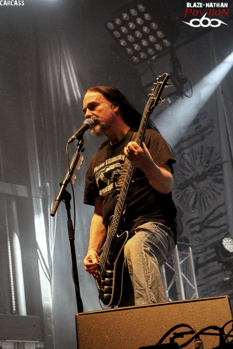 Arrivée en retard sur les lieux, l’ équipe de pavillon666 n’a pu voir les prestations des deux premières formations à savoir BUY JUPITER et GOATFATHER, mais ce n’est que partie remise pour ces groupes locaux. SVART CROWN A 13 heures 35, ce sont les brutes frenchies de SWART CROWN qui ouvrent le feu sur un public déjà conséquent. Rien de tel que du bon black/death pour accélérer la digestion et l’on sait que nos amis sudistes ne vont pas décevoir, c’est certain. En ce moment ce quatuor qui tourne afin de promouvoir son dernier album « abreaction » gravit un par un les échelons d’une notoriété bien méritée, en France mais aussi au niveau Européen. JB le Bail, maitre à penser donne le ton d’un metal aux furieuses accélérations, aux passages pachydermiques et aux envois tribaux. Alors fatalement nous ne pouvons qu’adhérer à leur démonstration de force, mais aussi de créativité. Résultat un excellent show donné ce Dimanche au Sylak qui a mis tout le monde d’accord. REGARDE LES HOMMES TOMBER Nous continuons dans l’excellence avec le set de REGARDE LES HOMMES TOMBER. Les nantais nous offrent un certain post-black metal d’une rare intensité, d’une rare originalité et épique à souhait. Remarqués lors de la sortie de leur premier album éponyme de 2013, ils enfoncent le clou avec le second intitulé « exile ». A base d’une certaine lourdeur de blasts et de désespoir ils vous tiennent à la gorge et ne vous lâchent plus, comme cet après- midi au Sylak avec une certaine quête de l’infiniment dark et l’on aime forcément. Comment voulez-vous faire autrement ? ABORTED A 16 heures 45 les Belges d’ ABORTED ouvrent leur « archaic abattoir » afin de nous présenter leur nouvel enregistrement « retrogore », mais pas que. La bande à Svencho a toujours la frite (sic) et va durant 40 minutes nous retourner la cervelle et le reste à l’aide de son gore-grind-death brutal et sans concession. N’ayant pu apprécier pleinement leur set au printemps dernier lors du show en ouverture de Kreator à Grenoble, je suis pleinement satisfait ce Dimanche. Ne manquait plus qu’un duo avec Julien frontman de Benighted, et ce fut chose faite, aargh ! DOG EAT DOG Le chien emblème du Sylak n’a qu’à bien se tenir s’ il ne veut pas être mangé par les Américains de DOG EAT DOG. Ces New-Yorkais vont créer un aparté dans cette affiche du Dimanche en nous proposant un show définitivement différent de tout le reste. Au menu du rap-metal-hardcore-hip-hop qui va plaire, ou pas, au public gavé de brutalité depuis ce midi. En effet leur fusion bien admise depuis plus de 20 ans est bien particulière, mais au final après avoir hésité un moment, je suis resté devant la scène en me surprenant moi-même, peut-être le saxo… Bref ce show bien chaud à fait mouche aujourd’hui, il fallait oser. TROLLFEST Place maintenant au « true norwegian balkan metal » avec les inénarrables nordiques d’Oslo. Vous avez aimé leur dernier opus en date « helluva », alors vous allez apprécier leur show oh combien festif aujourd’hui au Sylak. D’ailleurs le public ne s’y est pas trompé et a fait largement la fête avec eux au son des guitares bien sûr mais aussi du saxo et de l’accordéon, le folk-metal avec orchestre carnavalesque, ça marche ! CROWBAR Plus sérieux le sludge boueux de Louisanne avec à sa tête l’indéboulonnable guitariste/chanteur Kirk Windstein, CROWBAR va maintenant nous présenter un set habituel de gros riffs bien pesants, bien écrasants mais toujours bien inspirés. Alors les amateurs dégustent une nouvelle fois et les autres écoutent cette démonstration sortie tout droit de la Nouvelle Orléans. BRUJERIA Nos mexicains préférés du death-grind, BRUJERIA, sont maintenant là devant nous, machette au côté de l’un des deux chanteurs et démarrent le set avec leur fameux titre « brujerizmo ». Toujours la même puissance dans les riffs, chant thrash/death guttural avec provocations incessantes antireligieuses notamment. Mais le public répond peu, dommage ! Vus ce printemps à Genève il y avait un échange de bon aloi en Mexicain devant la scène ce qui avait permis d’instaurer une bonne ambiance que je n’ai pas retrouvée ce soir au Sylak. Le final avec « marijuana » et les coups de machette sur les retours de scène ont un peu rattrapé le coup. ABBATH Entrée spectaculaire d’ABBATH en scène avec le craché de feu annonciateur d’une prestation très attendue de l’ex-Immortal. Le trio de Bergen devenu quartette en live va durant une heure de set déployer tout son art noir à la Immortal et dark-metal à la Abbath. Une certaine continuité pour le chanteur/guitariste à la voix reconnaissable entre mille. Le Norvégien Abbath de son vrai nom Olve Eikemo va encore une fois nous offrir un show incontournable et unique. Certains aiment, que dis-je adorent, d’autres n’apprécient pas sa présence en le traitant notamment de grotesque. En ce qui me concerne j’ai encore dans la tête les images de sa prestation donnée dernièrement au Metaldays en Slovénie et je n’aurai pour rien au monde raté celle du Sylak, une énorme prestation, une prestation « immortelle » tout simplement. CARCASS Qui pouvait le mieux clôturer cette soirée du Dimanche et du festival en même temps ? Bien évidemment c’était CARCASS. Carcass le légendaire groupe de Liverpool (UK) avec les non moins légendaires chanteur/bassiste Jeff Walker et guitariste Bill Steer. Alors ce soir place au death-grind de nos amis britishes qui avaient remis le couvert en 2012 après la séparation en fin des 90’s. Ici tout n’est que finesse chirurgicale dans des envois véloces, rapides, hargneux et agressifs aussi. Alors cette petite heure passée en leur compagnie ne fut qu’un déluge de bonheur pour tous les métalleux extrêmes, et les autres pourquoi pas ! Toujours un must en live, on aime bien entendu. Ainsi se ter