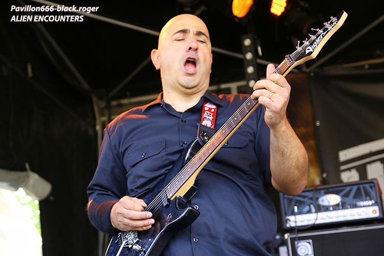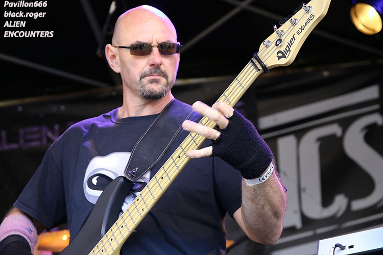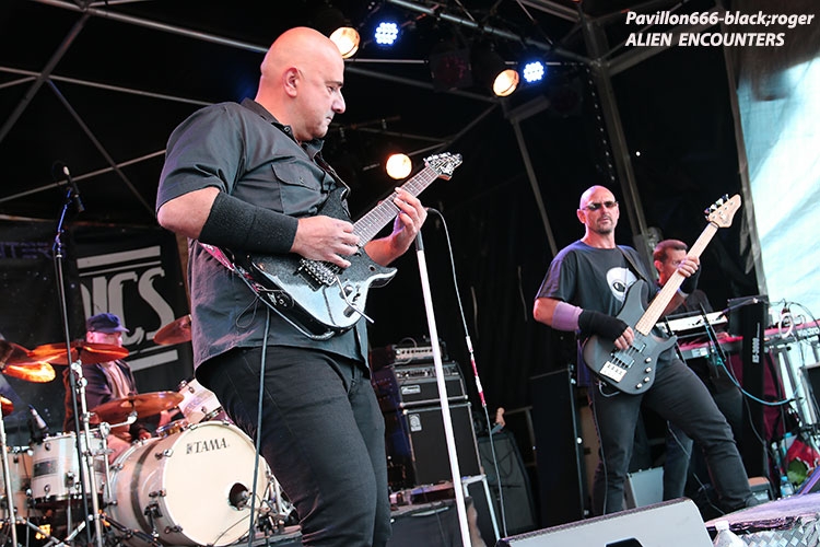 Après un léger « retard à l’allumage », c’est donc ALIEN ENCOUNTERS qui a l’honneur et l’avantage d’ouvrir la partie musicale de la soirée. Au menu du rock-metal à tendance progressive. On nous offre des reprises mais surtout des compositions bien personnelles dans une veine orientée « space-rock » à la « Hawkwind » souvenez-vous ou encore Monster Magnet. Bonne idées, bonne maîtrise instrumentale, il n’en fallait pas plus pour séduire un public arrivant progressivement dans l’enceinte du festival bressans.