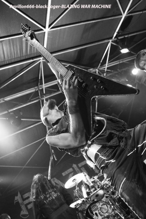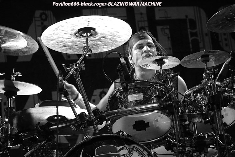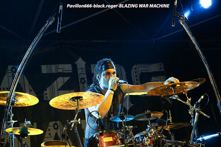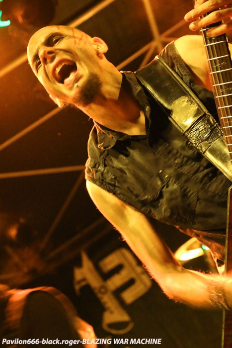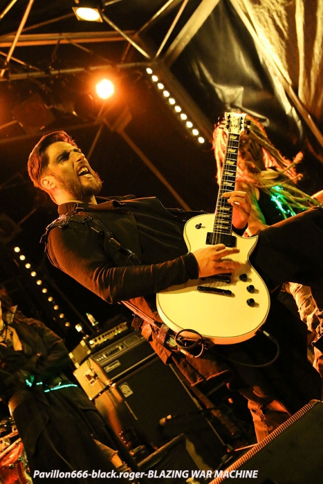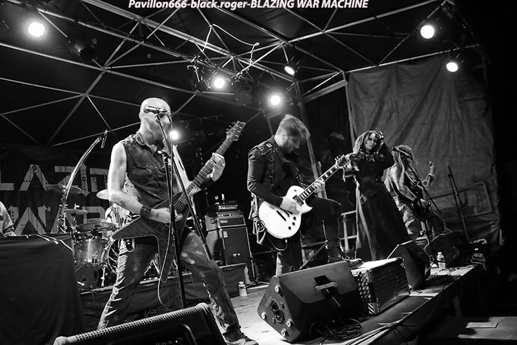Le metal extrême va maintenant vous être servi par le sextette de Marseille BLAZING WAR MACHINE, formation où l’on retrouve entre autres deux ex-Dagoba, Franky Costanza et Izakar. C’est Irina Folie, chanteuse/growleuse/frontwomen qui mène la danse d’un black aux allures symphoniques où le côté indus post-apocalyptique se dessine en fond d’écran.