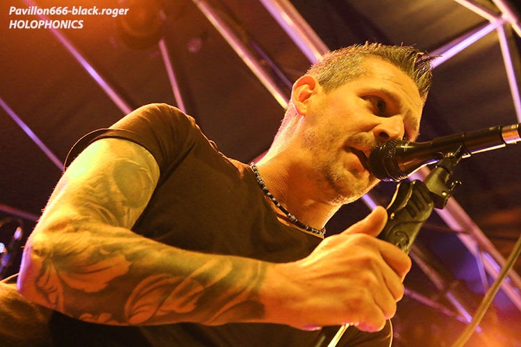 HOLOPHONICS en live m’a surpris ce soir. Me souvenant d’un set lointain je n’avais pas remarqué ce groupe dans le bon sens du terme. Et là devant-moi je découvre une machine rock-metal puissante avec par endroits un déluge stoner de bon aloi. Alors, leur puissance de feu procurée par une rythmique très rentre-dedans, une guitare hurlante et un chant écorché m’ont vraiment « bluffé » ce soir. Tantôt rock plombé, tantôt metal ébouriffé, les compositions du groupe possèdent un petit côté innatendu qui n’est pas fait pour nous déplaire. Résultat des courses, leur show bien copieux a satisfait notre appétit, de rock « couillu » et c’est tant mieux !