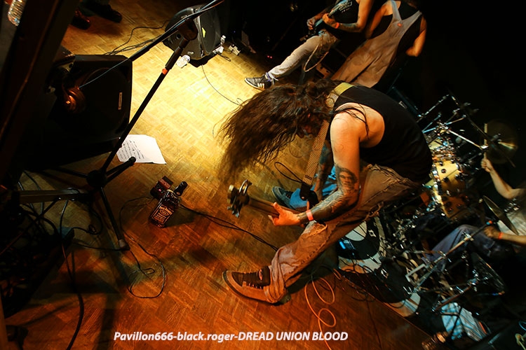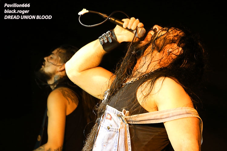 Le metal fait son apparition ensuite vers 18 heures avec les, déjà bien connus, DREAD UNION BLOOD. Ceux de Sallanches dans la « hiaute » ne sont pas venu ici à Rumilly pour faire les foins mais pour nous percuter de plein fouet à l’aide d’une prestation style « bulldozer ». Nous n’en attendions pas moins de leur part et ces hommes en salopettes de paysans nous ont insufflé leurs compositions mélangeant le sludge, le rock sudiste où même tout simplement le rock n’roll sous amphétamines. Titres imparables avec tous les « potêts » dans le rouge cela va de soi. Que dire de plus, que leur prestation fut chaude comme la braise et puissante comme du métal en fusion !